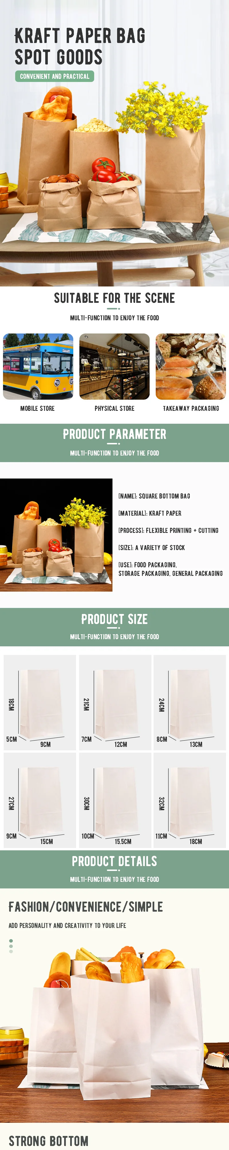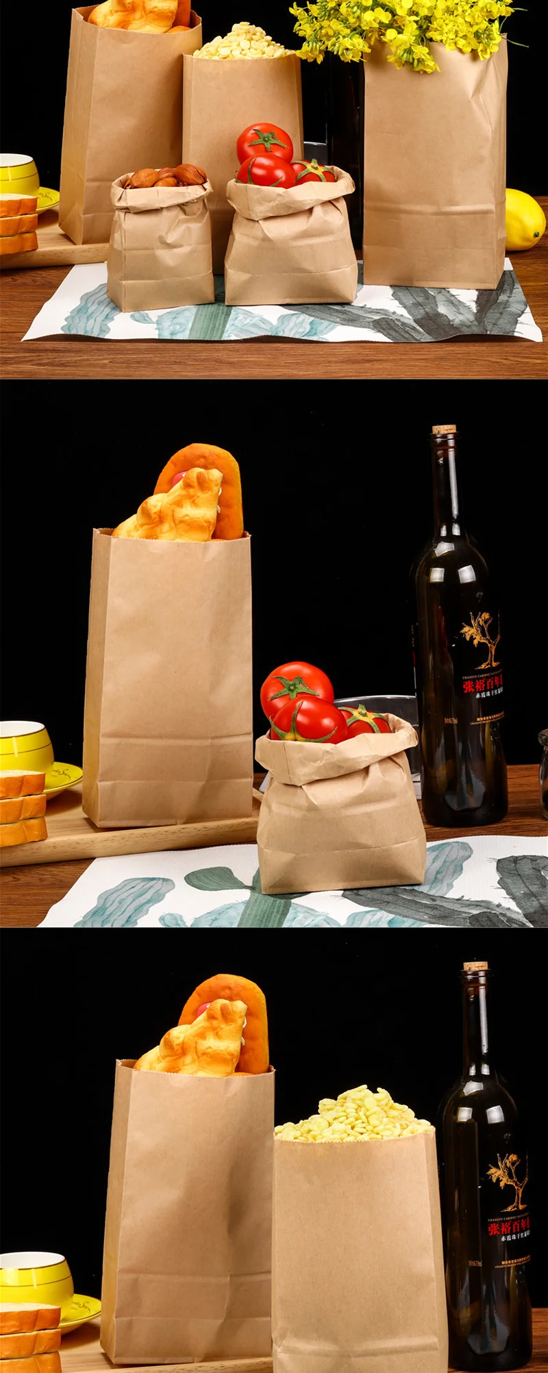 2.Kraft paper bags are food grade and can be in direct contact with food;