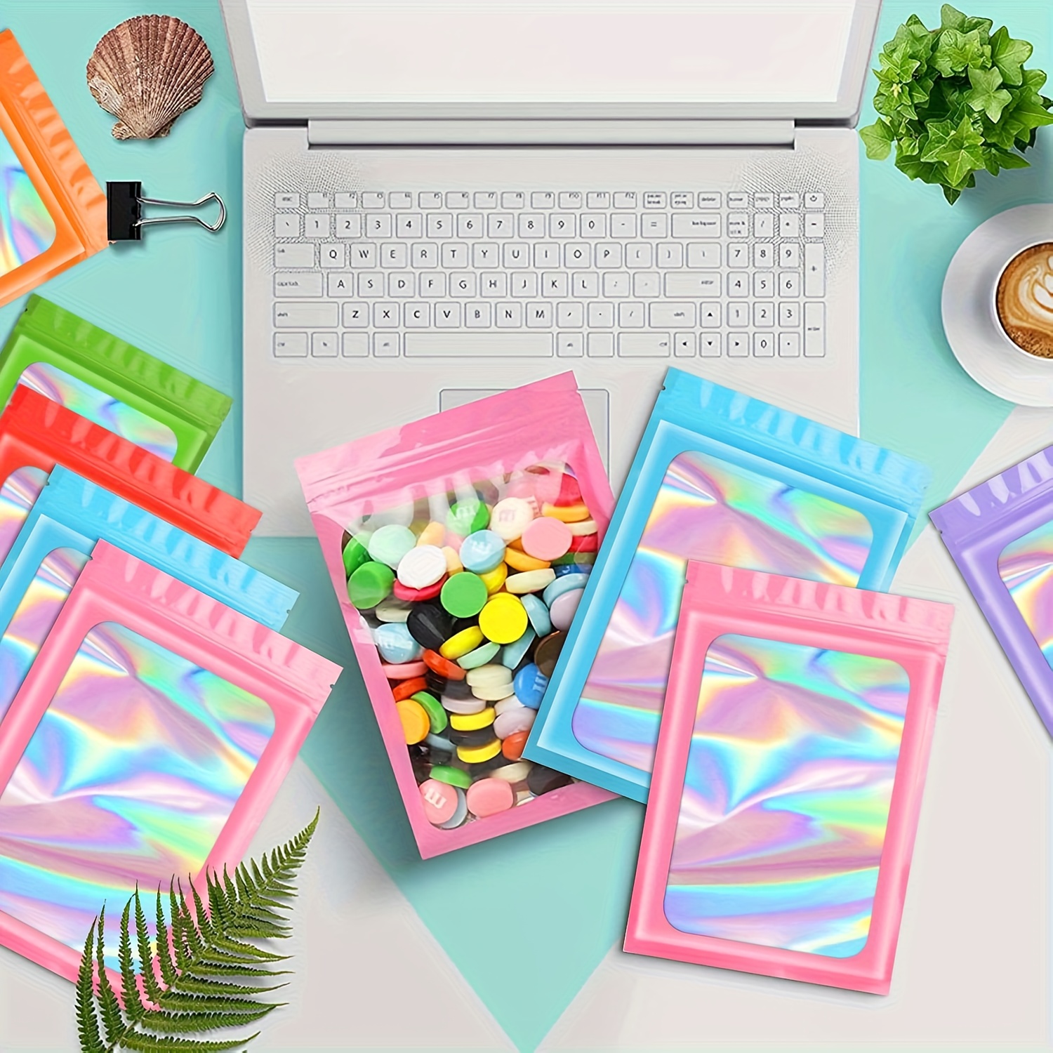 Be the first to review “100 Pack Holographic Mylar Bags with Clear Window – 6.3×9.4 Inch Smell-Proof & High Quality Resealable Snap-Fit Foil Pouches, Iridescent Multicolor Pink, Blue, Green, Purple, Orange, Yellow, Red, Brown, Black, White for Food, Candy, Snacks, Retail Packa”