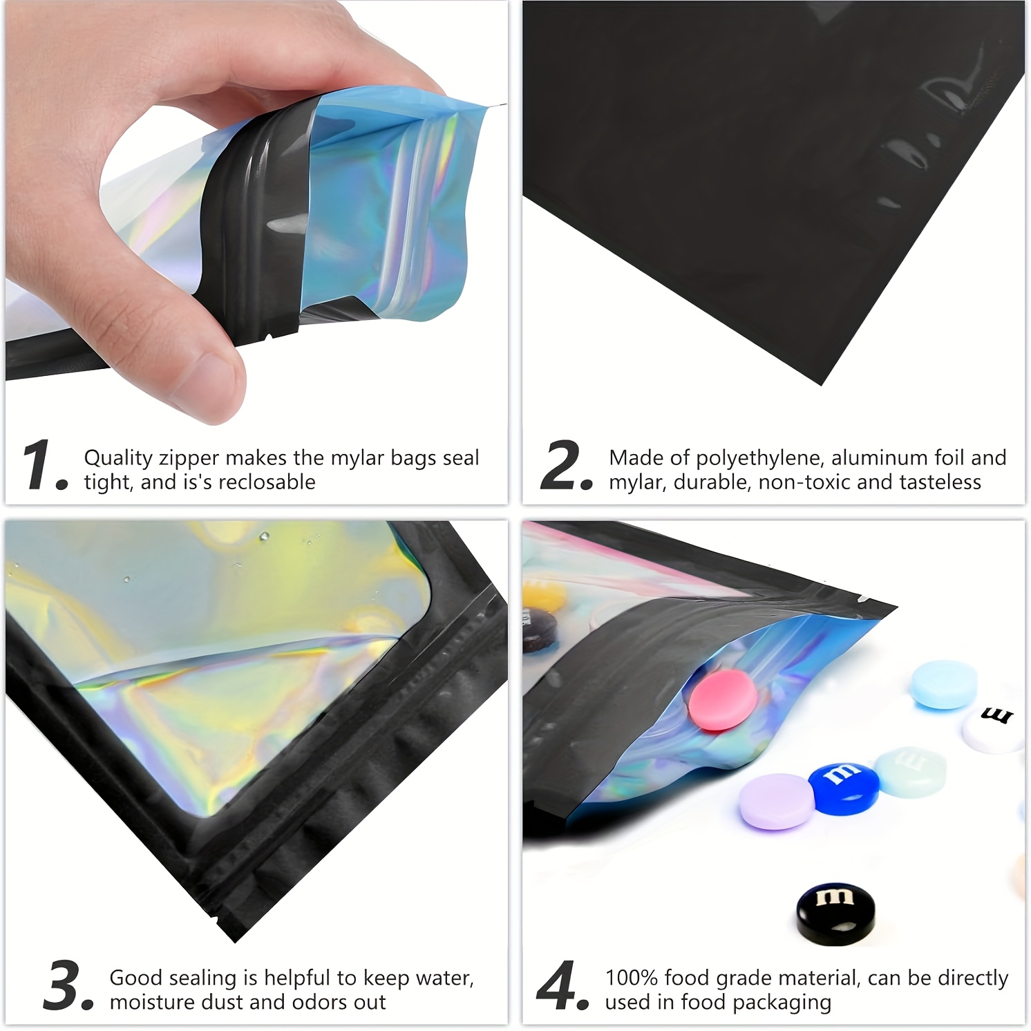 0| 100 Pack Holographic Mylar Bag...