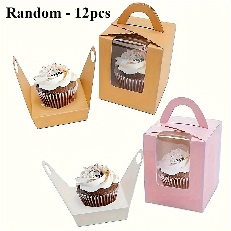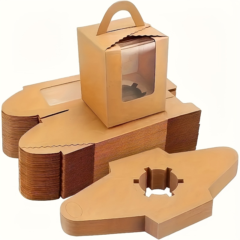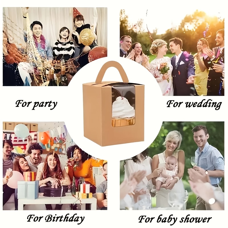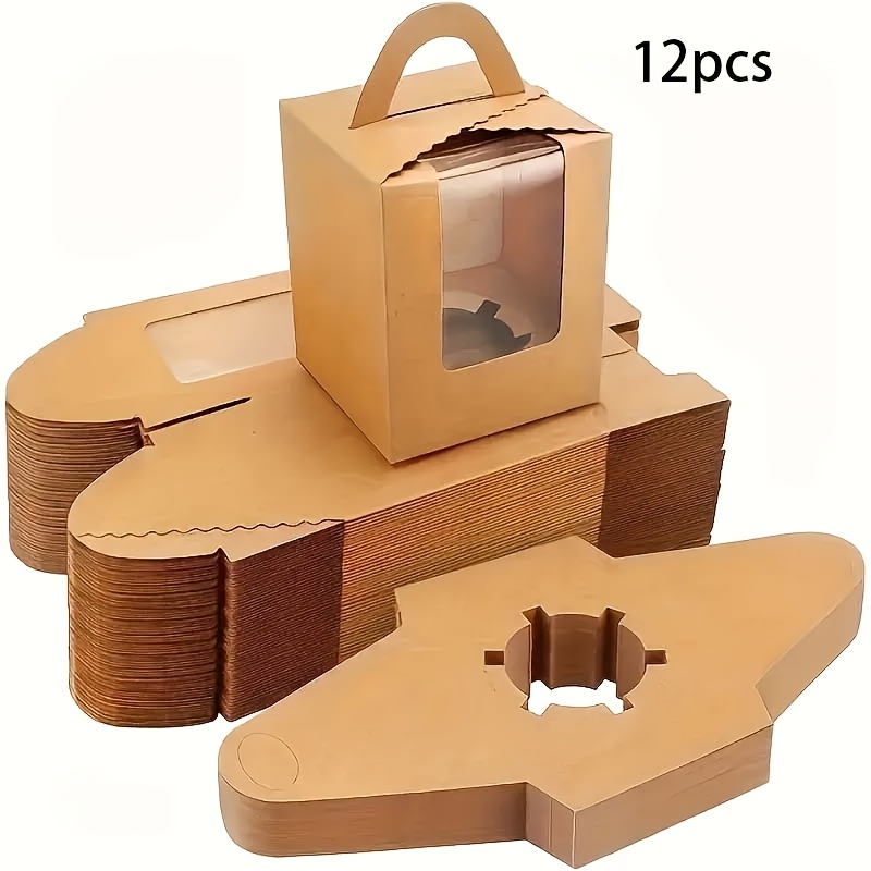 12pcs Elegant Brown Paper Cake Boxes with Handles & Clear Viewing Window – Perfect for Cakes, Pastries, and Muffins – Ideal for Weddings, Birthdays, and Parties, Cake Boxes for Baking