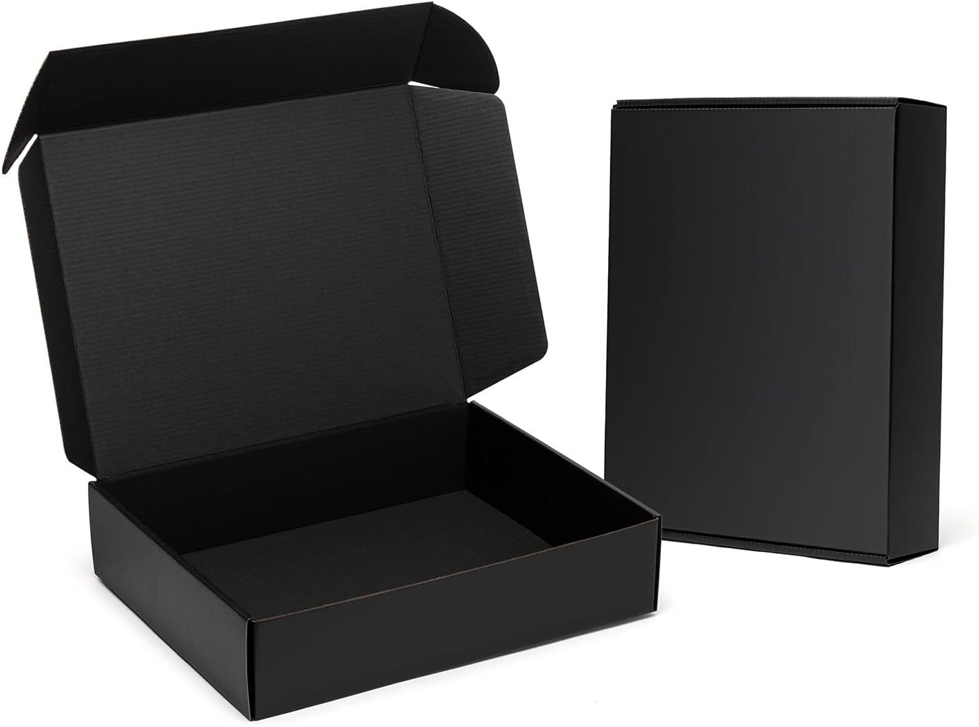 Black Shipping Boxes: Made of recycled cardboard paper, eco friendly. Outer size: 12x9x4″ inches; Inner size: 11 5/8 x 8 7/8 x 3 7/8 inches, 20 pack, matte black color.