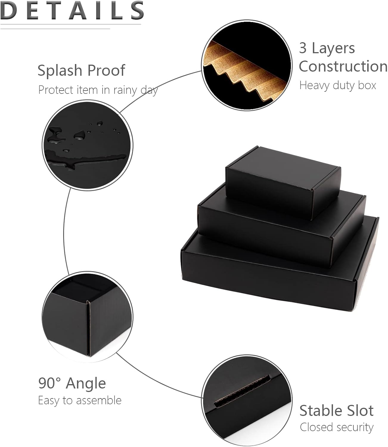 Easy to Assemble Black Mailer Box: come flat, can be assembled quickly without any tools like tape or glue. Tab locking makes this small packing boxes closed security. Protect your product so that it can arrive safely.
