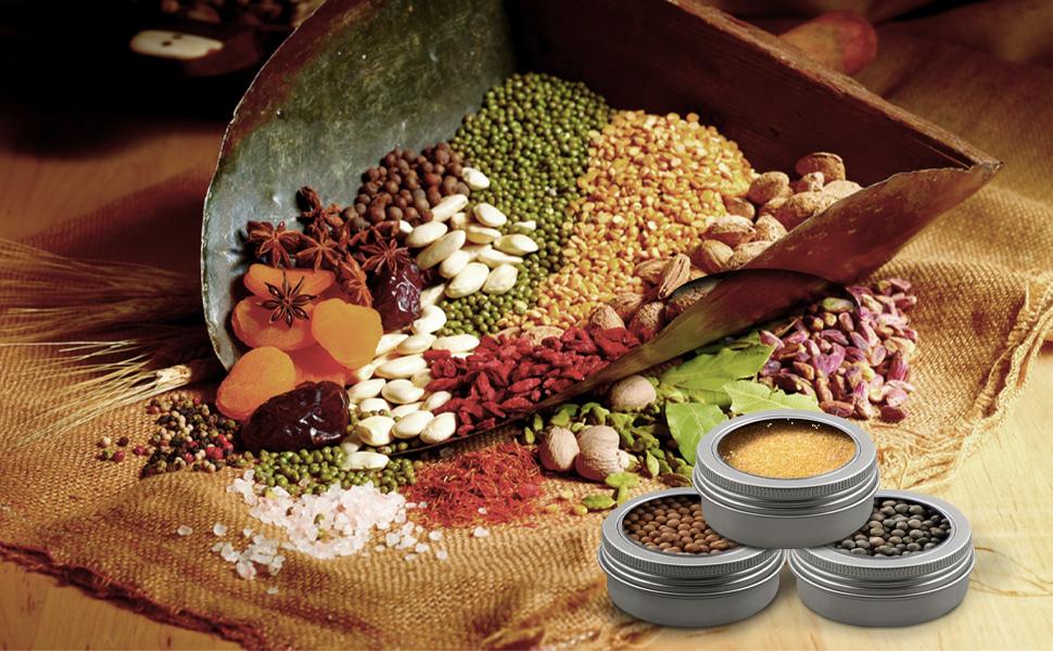 Versatile Aluminum Tin Jars- The metal tin jars are suitable for storaging candies, mini candles, beads, soap, glitter, coins, spices, lip balms, cosmetics and other small items, keep your everything neat and tidy