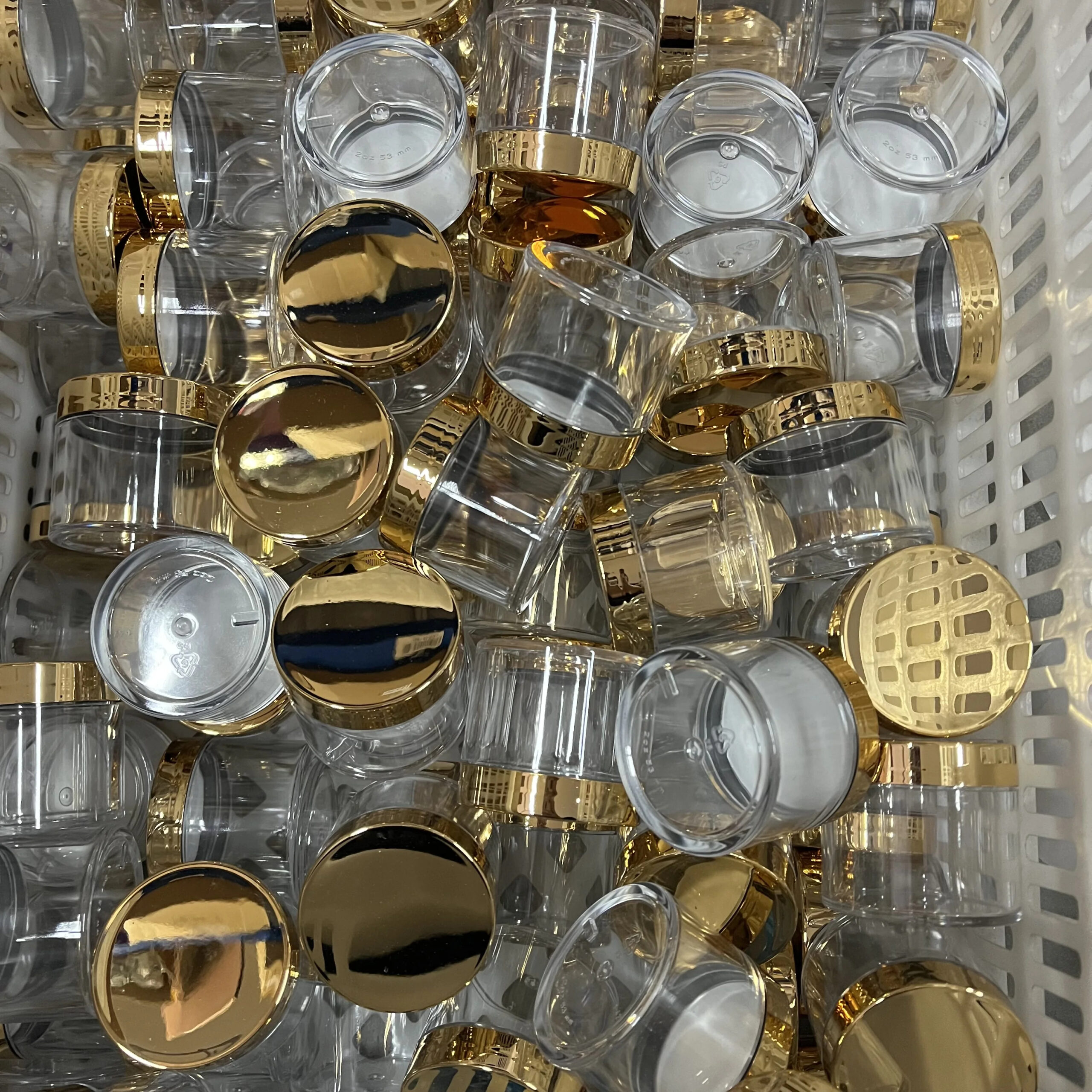 - Features : Gold Lids Clear Transparent Mini Empty Box