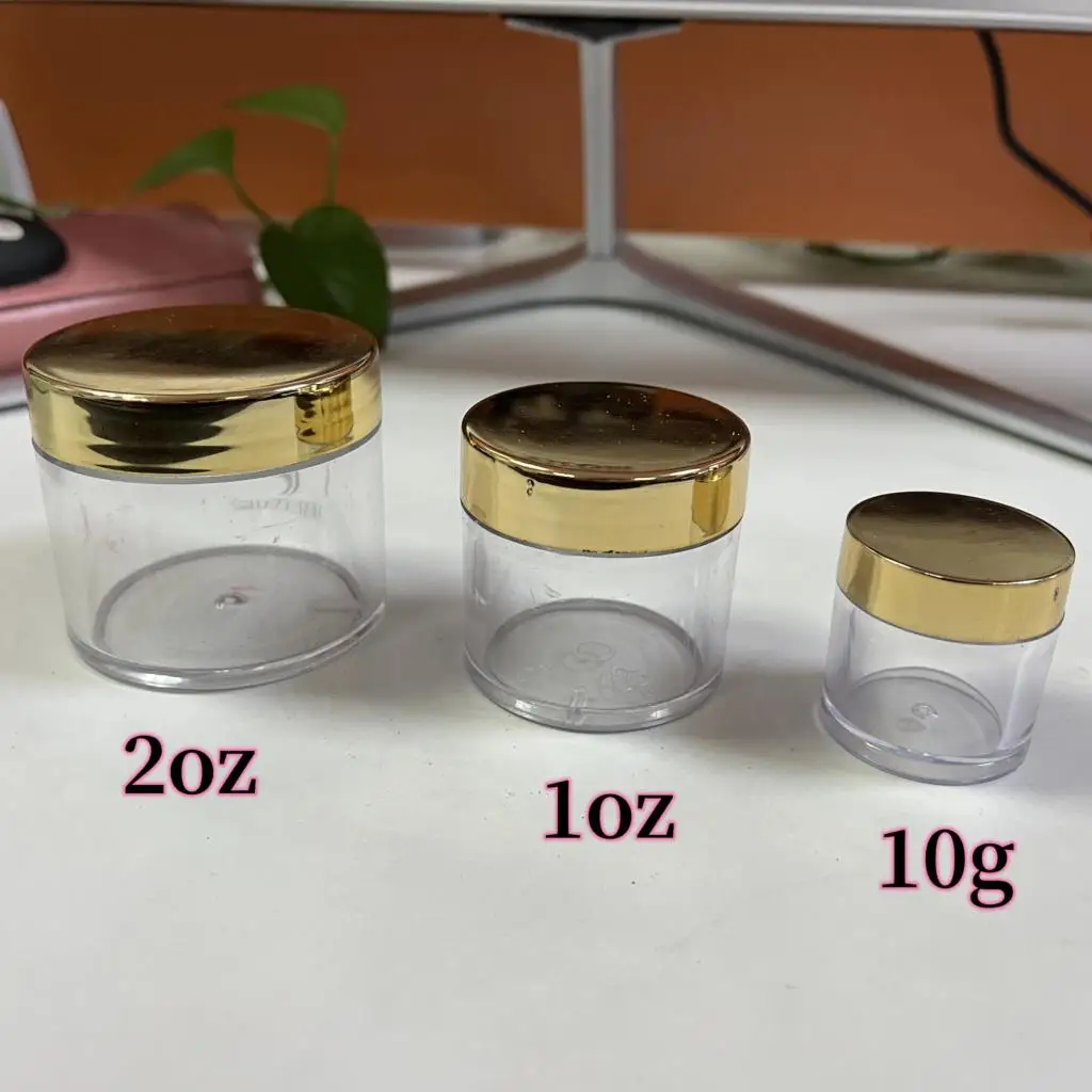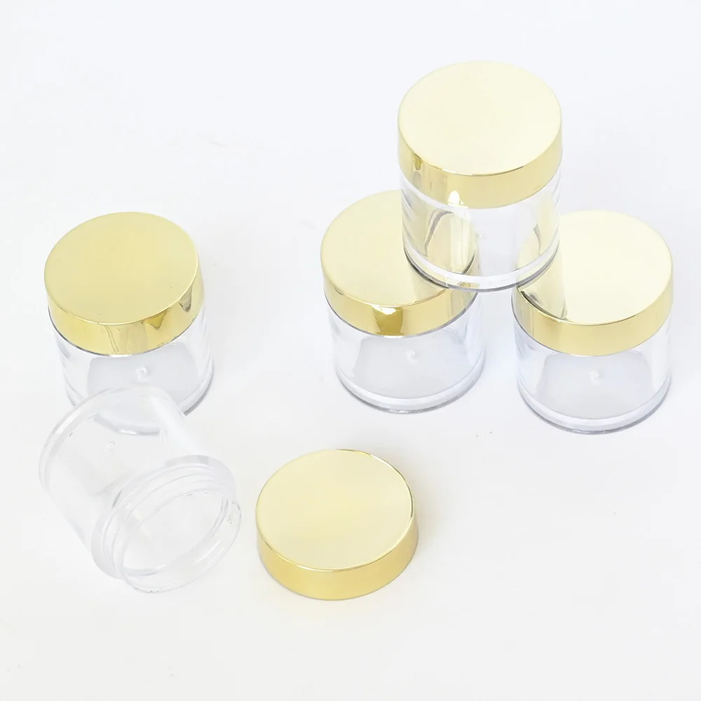 20/50/100pcs 10g/1oz/2oz Pots Cosmetic Travel Bottle Gold Lids Clear Transparent Mini Empty Box Nail Acrylic Powder/Glitters Jar