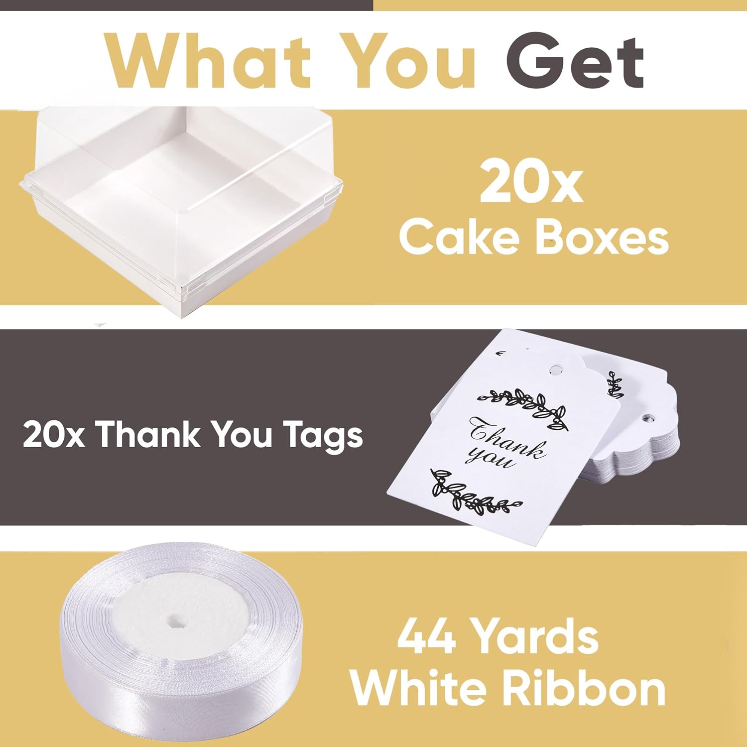 Sturdy Construction with a Clear Lid: Crafted from high-quality food-grade paperboard with a crystal-clear lid, offering durability and an elegant showcase for your baked goods.