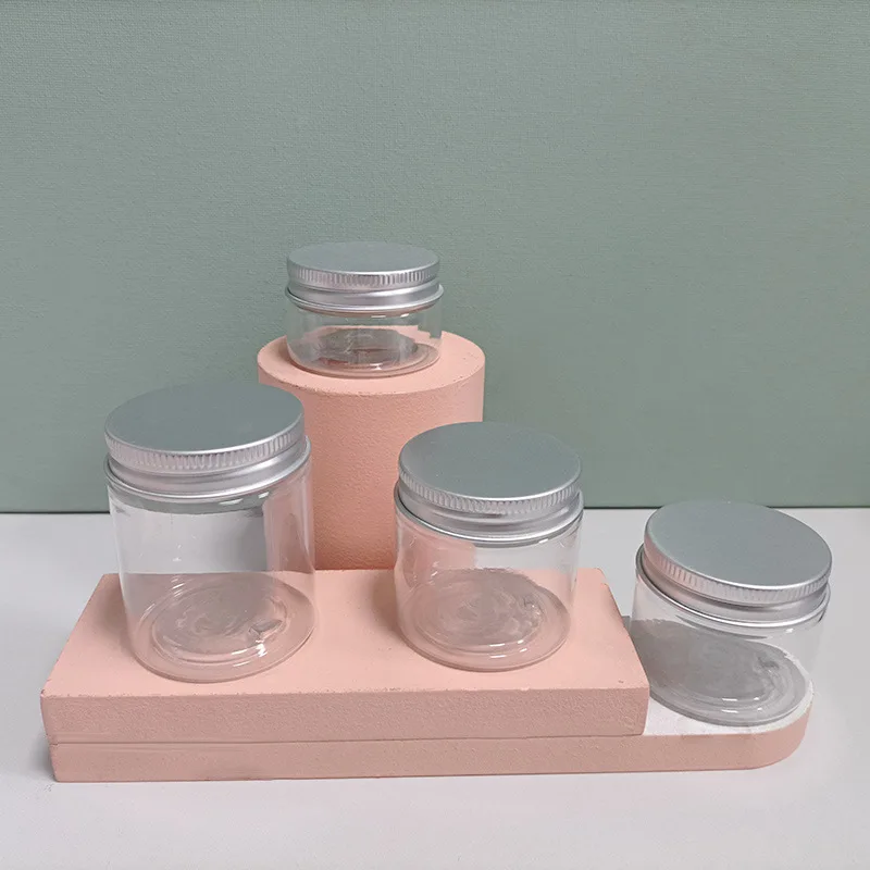2.PET clear round wide-mouth plastic jars empty cosmetic makeup box food storage canister container jar pot bottle.