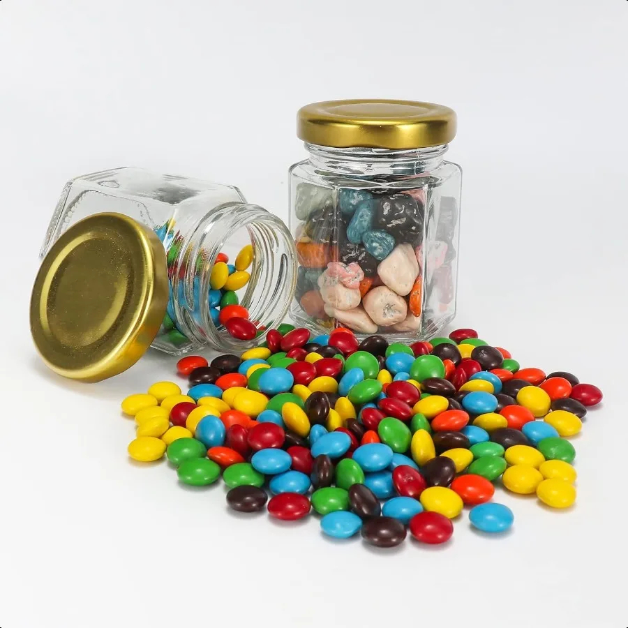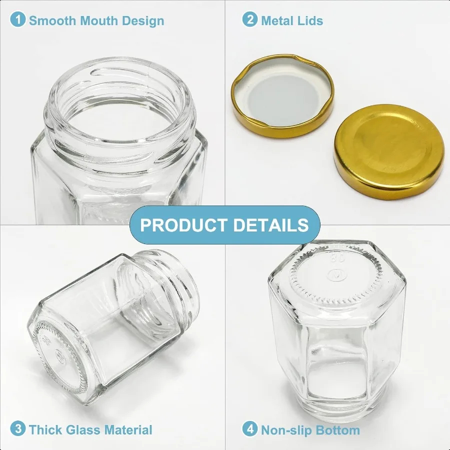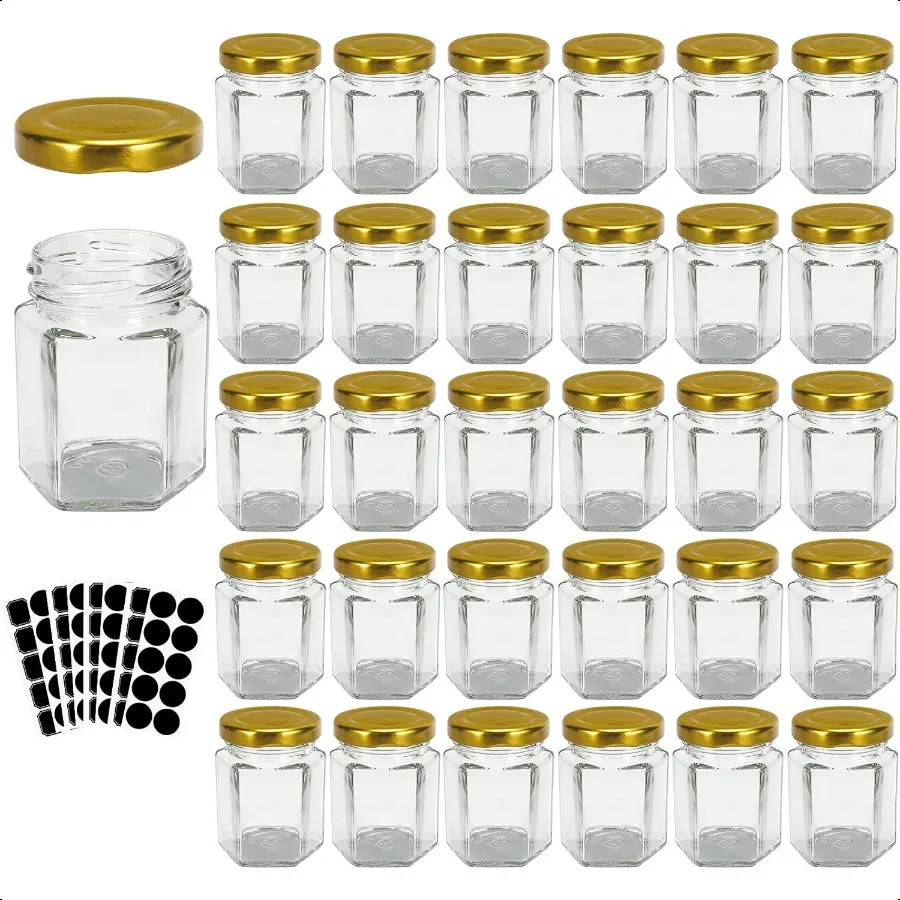 3 oz Hexagon Glass Jars with Gold Lids 30 Pack Honey Jars Canning Jars Small Spice Jars for Jelly Herb Jams Candy Wedding Favor