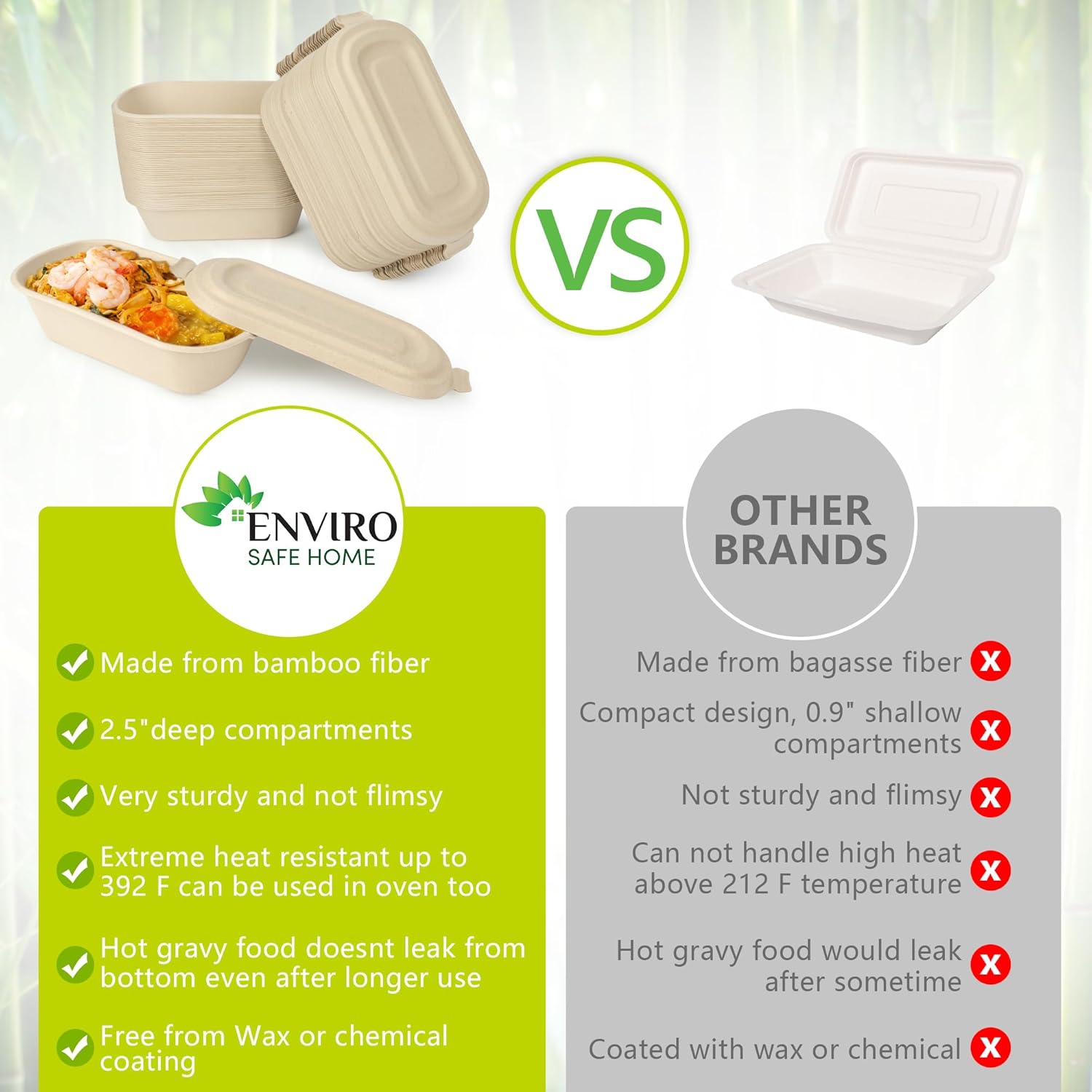100% Satisfaction Guarantee: At Enviro Safe Home, we are committed to the quality and sustainability of our bamboo disposable meal prep containers. With a 100% satisfaction guarantee, we ensure a risk-free purchase, ready to address any concerns within 30 days to ensure your complete satisfaction.