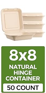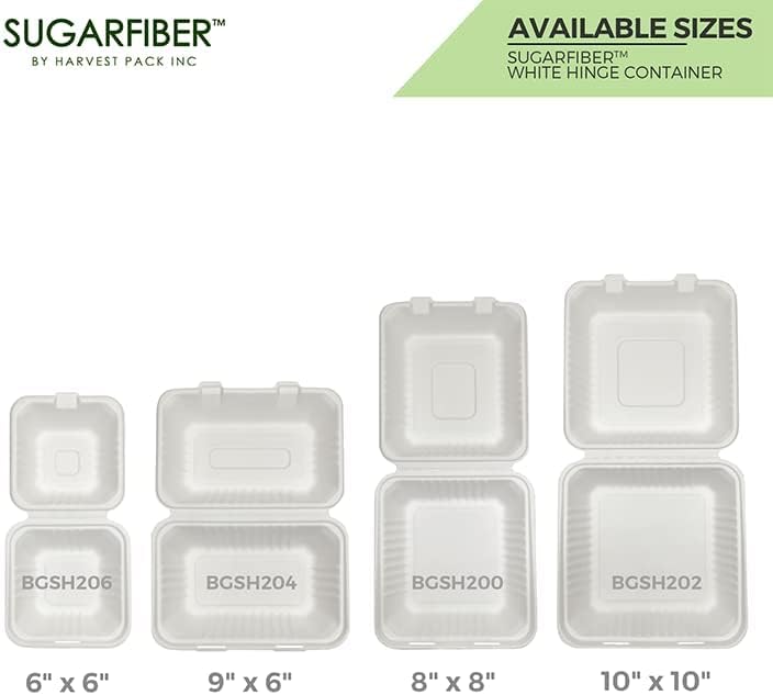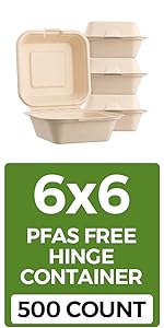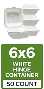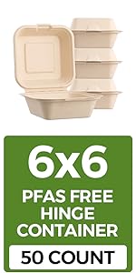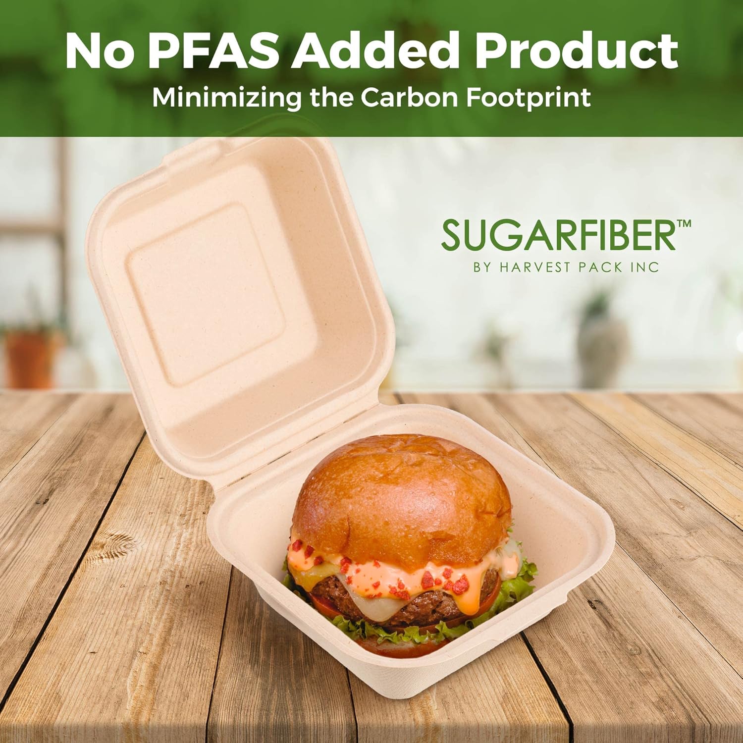 Be the first to review “[50 COUNT]Harvest Pack PFAS FREE 6 X 6&quote; Compostable Square Hinged, Single Compartment Clamshell Takeout Food Containers, Heavy-Duty Bagasse To go Container, Made from Eco-Friendly Sugarcane Fibers”