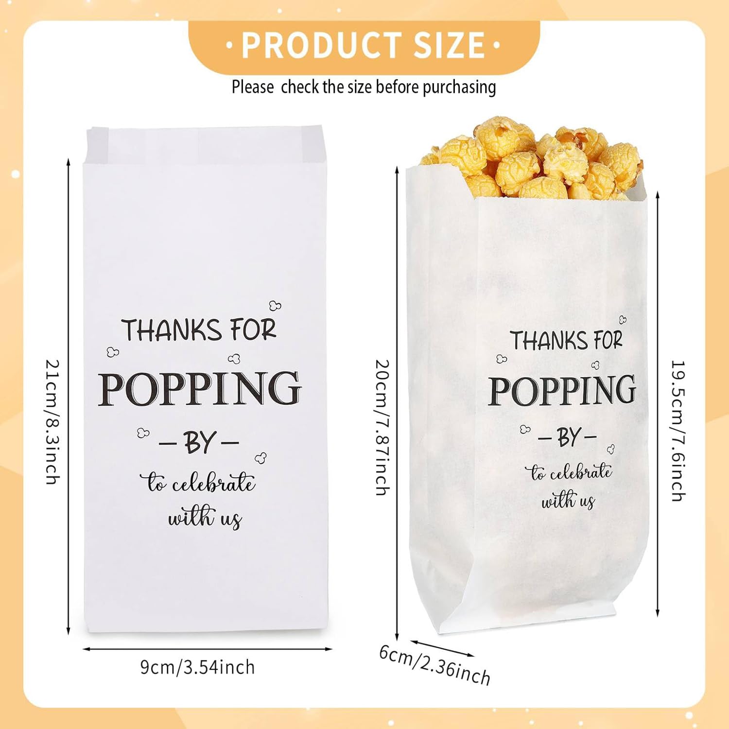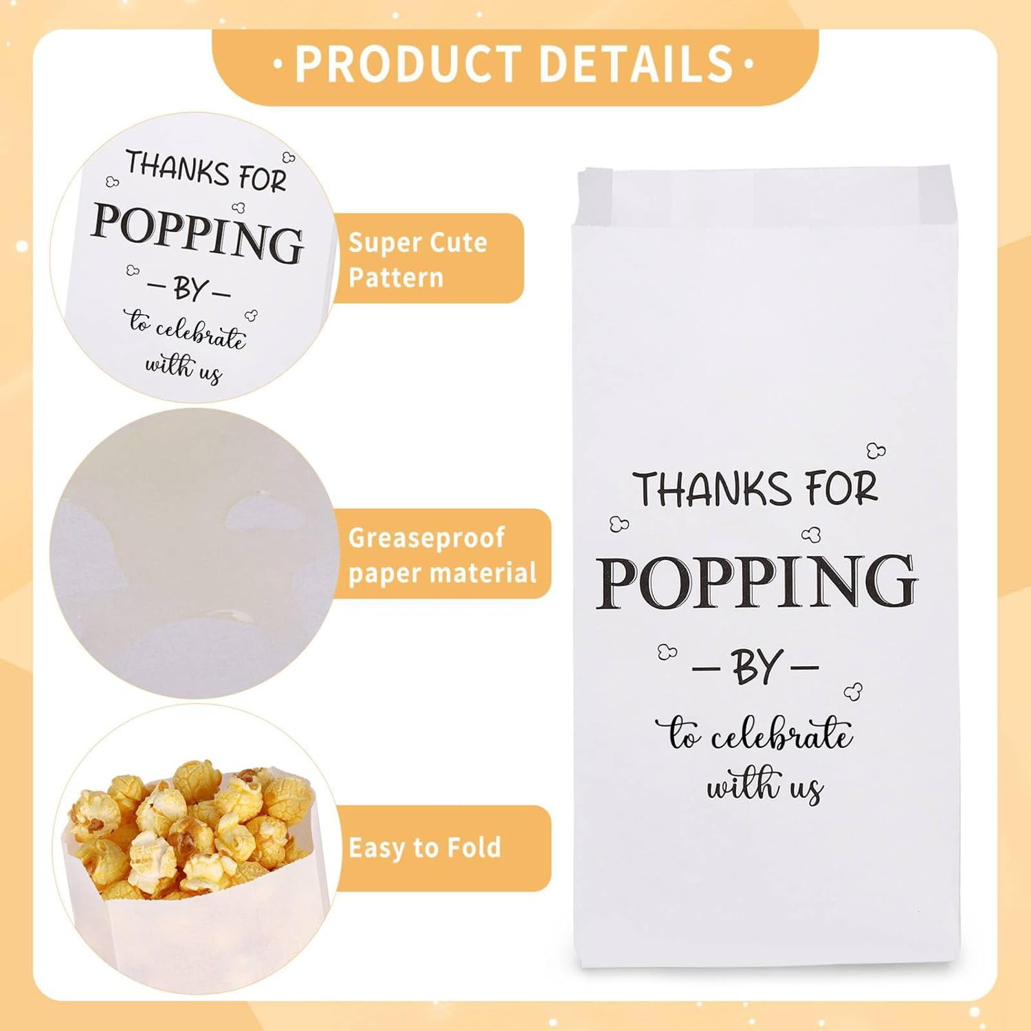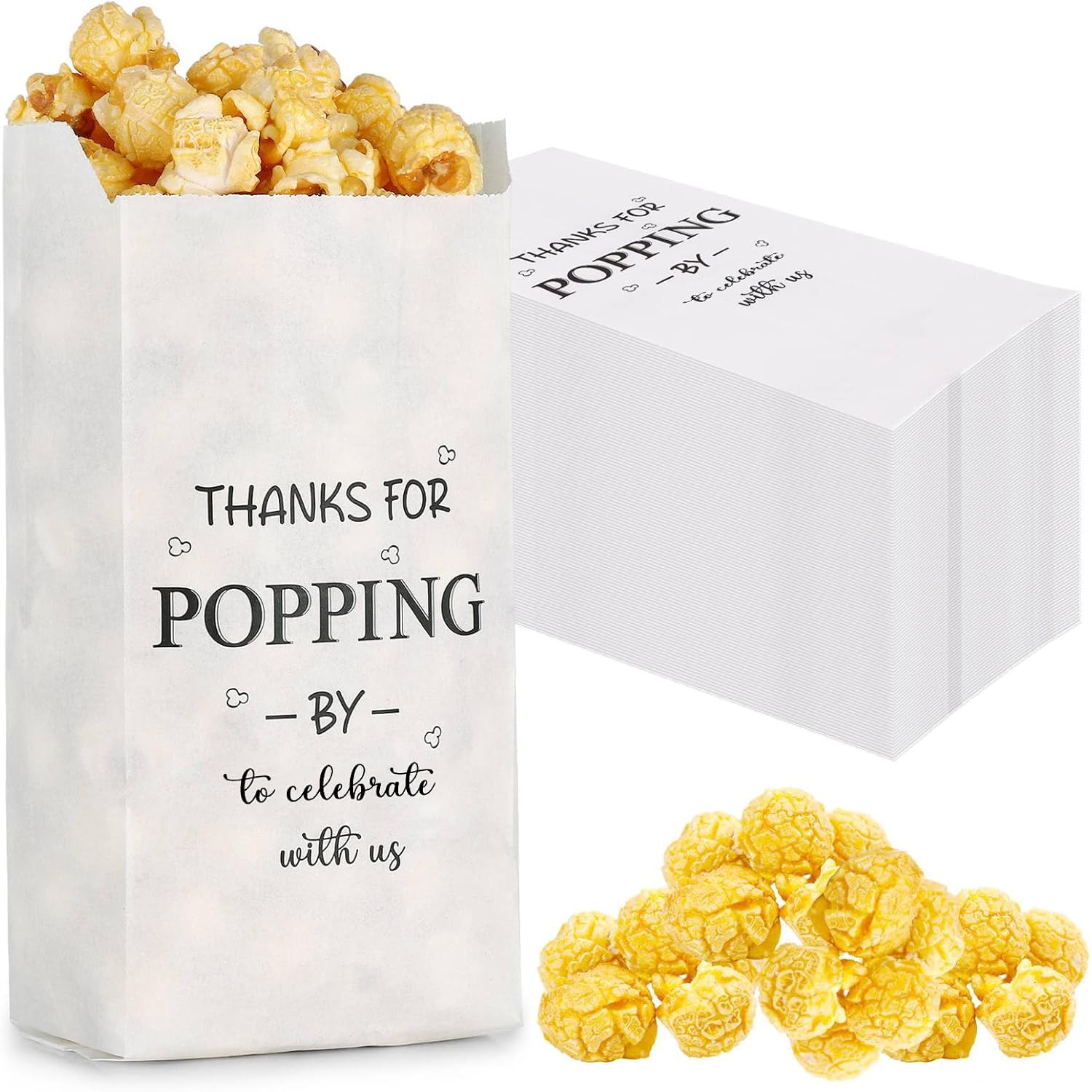 Package Includes: You will receive 50 pieces of thanks for popping by popcorn bags, these candy bags bulk assure you of ample packaging for your popcorn and are the quintessential party accessory that adds a sophisticated touch to your event; Independent packaging for easier access.