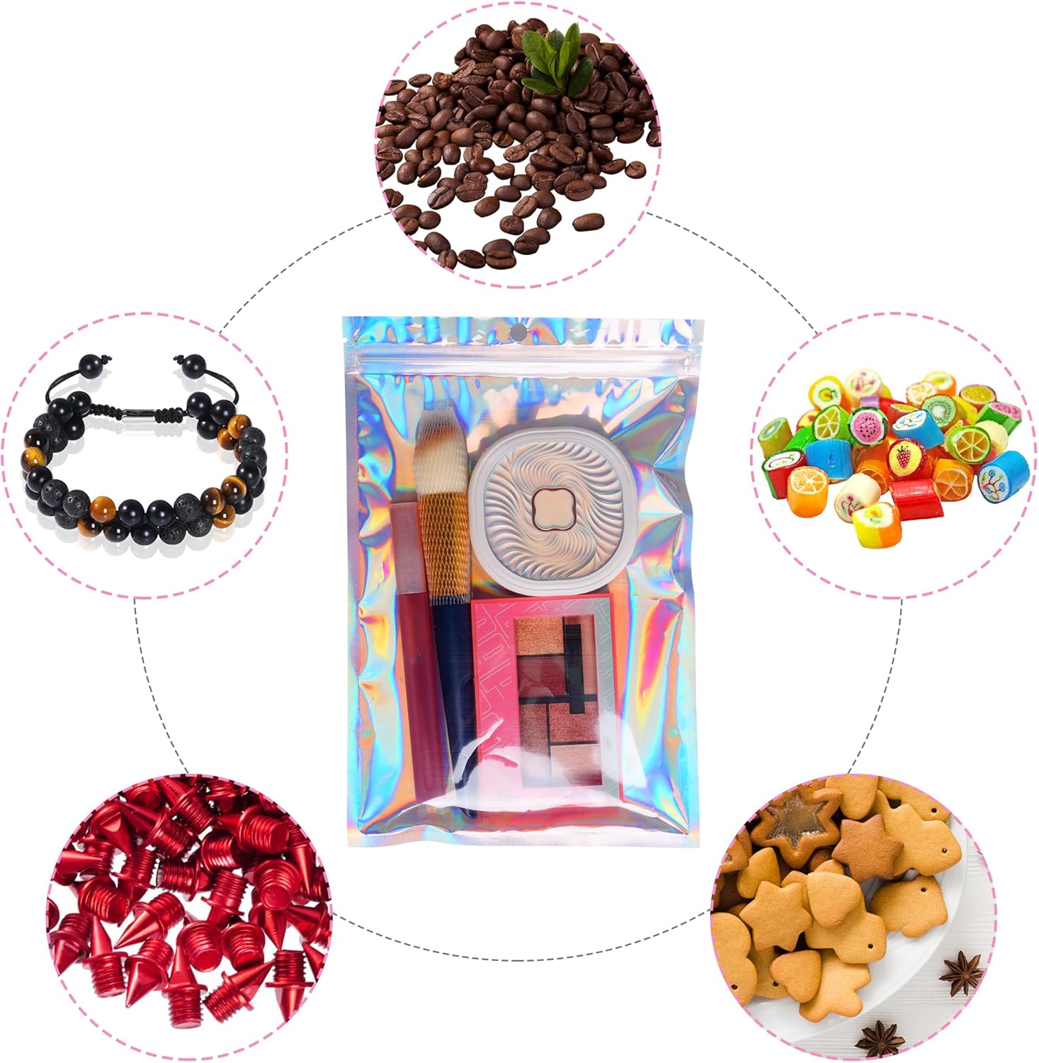 50Pcs Pen Packaging Bags for Small Business, Resealable Foil Pouch Bag For Pens, Holographic Ziplock Smell Proof Storage Bags for Packaging Lipgloss,Jewelry,Cosmetic,Candy