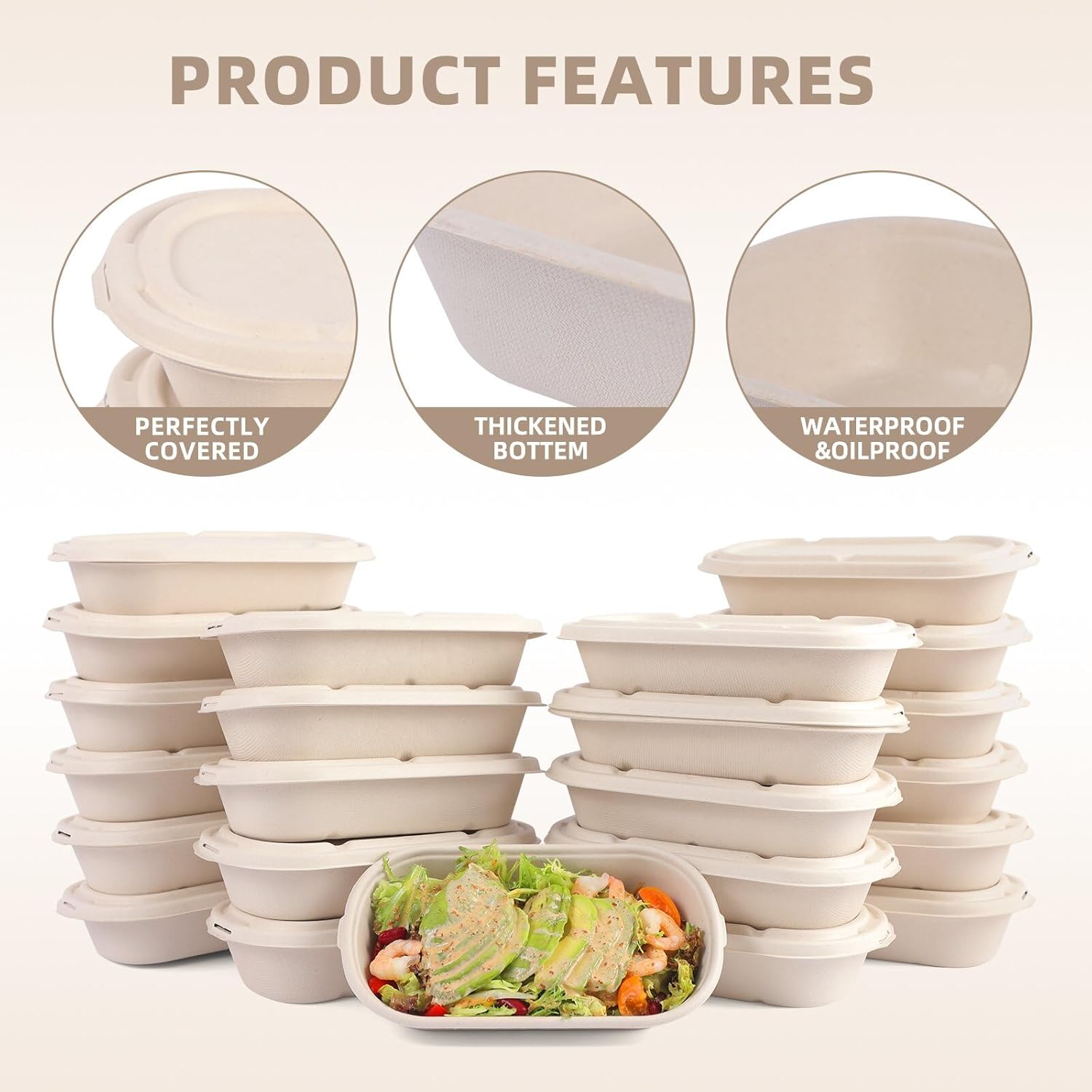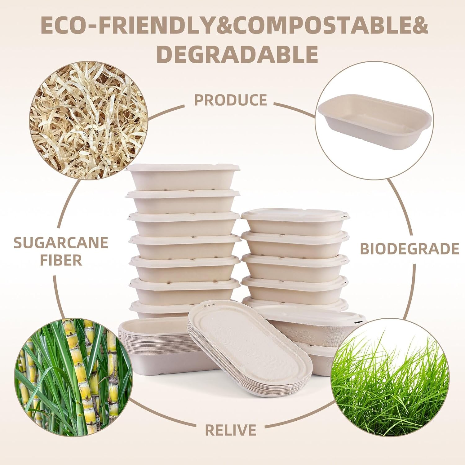 Health and Material: Our disposable container bowls are made of sugarcane plant fiber pulp material, which is pure natural, without wax or bleach, and is absolutely harmless to the human body. The takeout container can be degraded and used as garden plant fertilizer.