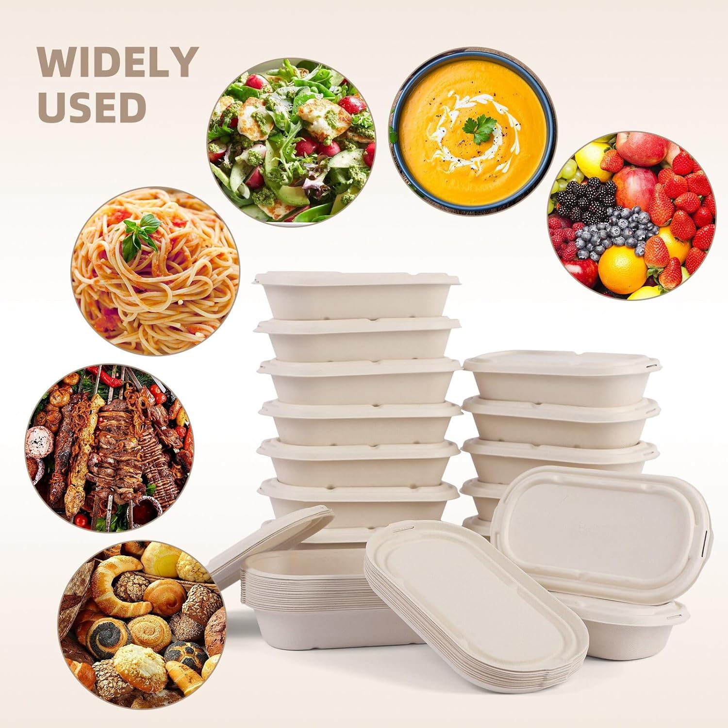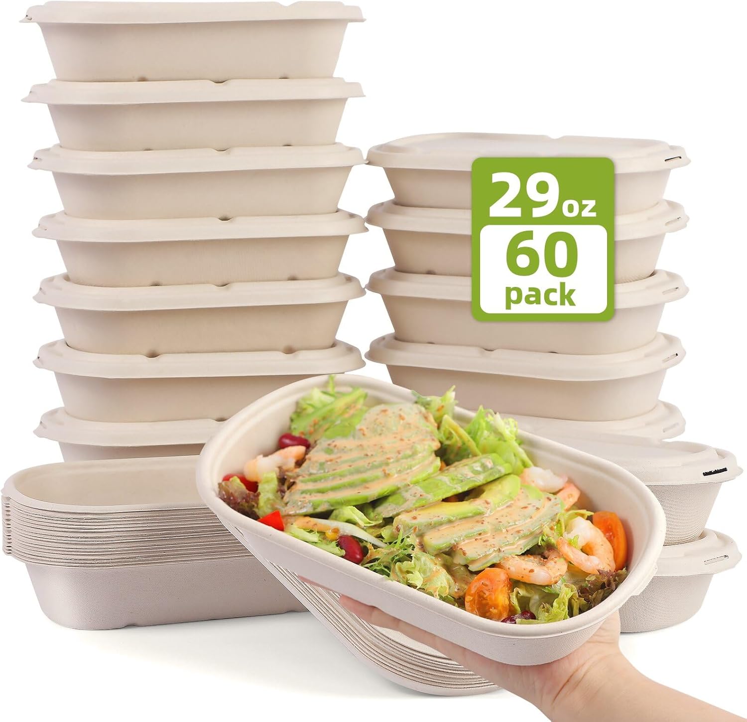 60Pcs29oz Disposable Meal Prep Lunch Food Takeout Salads Sandwiches Bowls Containers with Lids,Compostable Biodegradable to go Food Microwavable Freezer Safe Containers for Party Camp out.