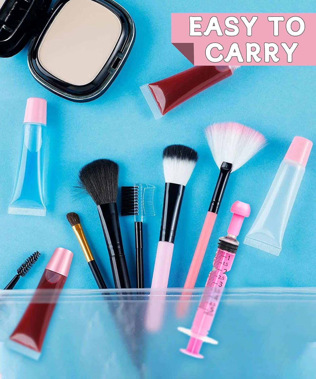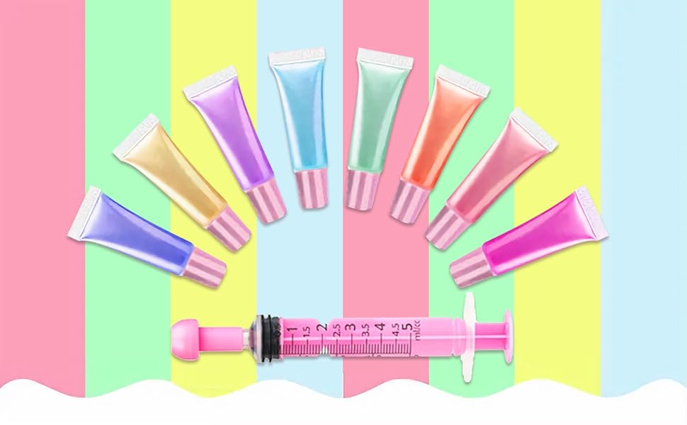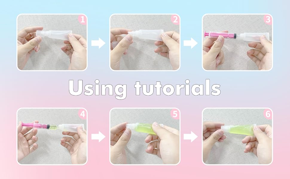 The included syringe makes it easy to transfer lip gloss or other beauty products into the containers. Fill the syringe to the indicated scale, and distribute the liquid easily to the bottom of the empty tubes with the longer needle