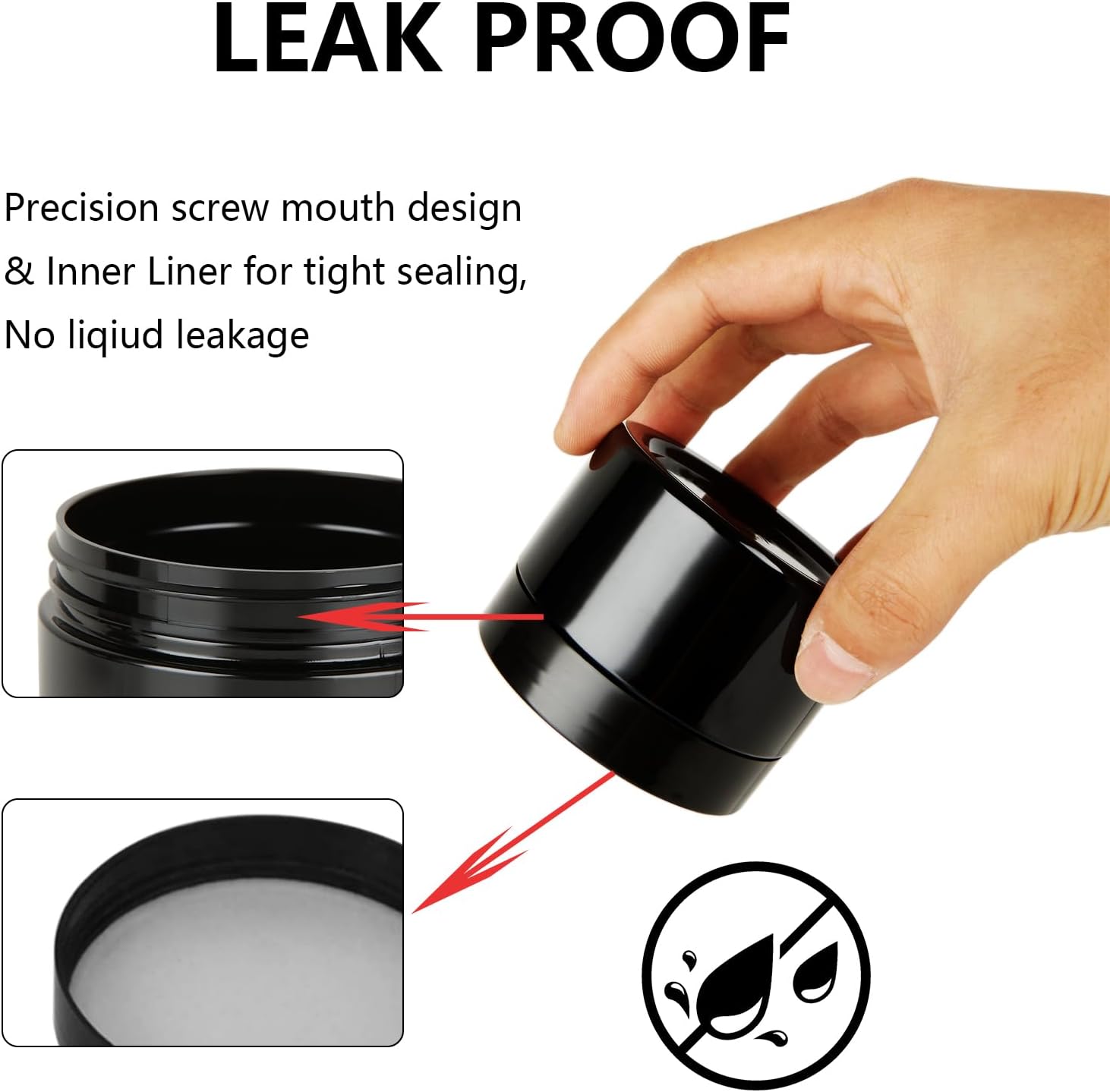 Leak Proof Design: Plastic cream jars with precision screw mouth design that makes it more tightly attached to the lids, each lid has a foam lining, has a good sealing, can effectively protect the liquid and paste in the jars does not leak