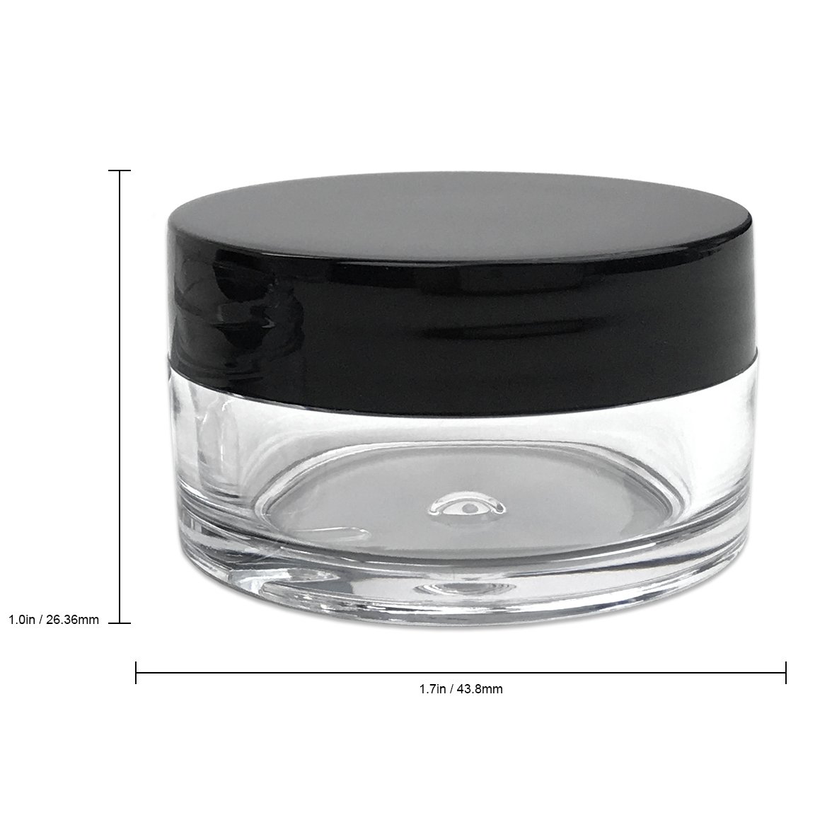 20G/ 20ML Round Acrylic Clear Thick Jars with Flat Top Screw Lid – Color: Black