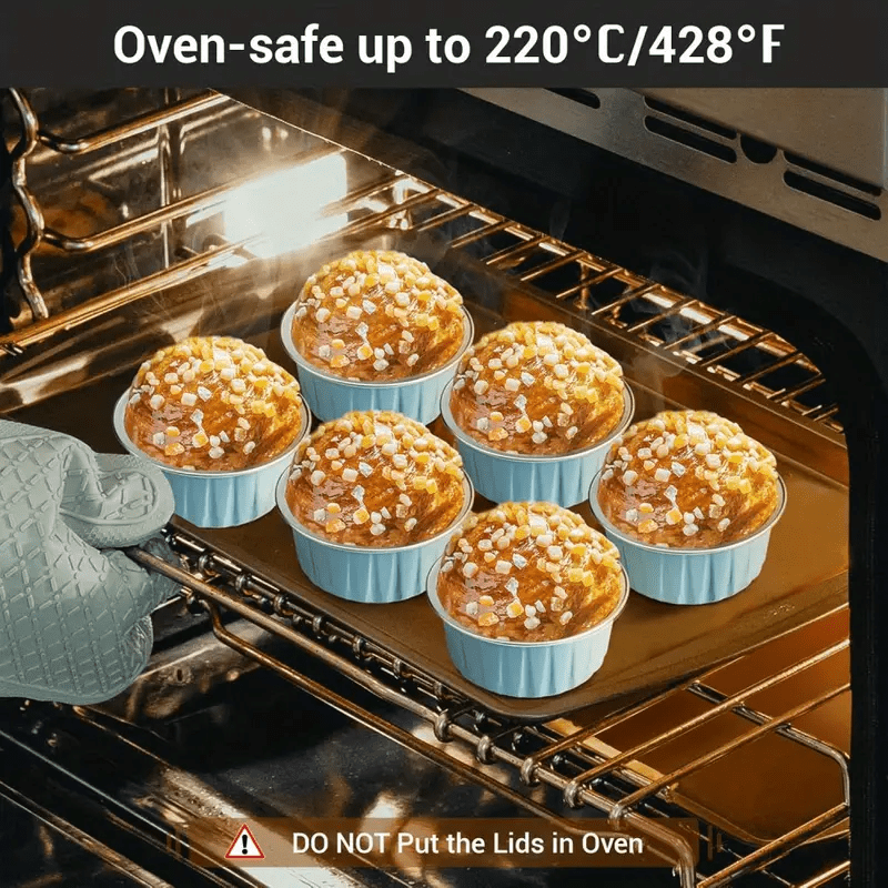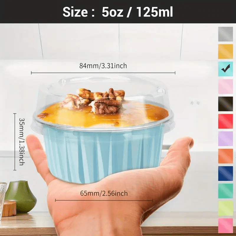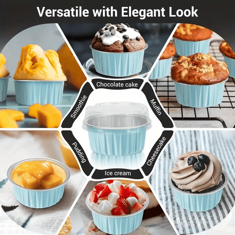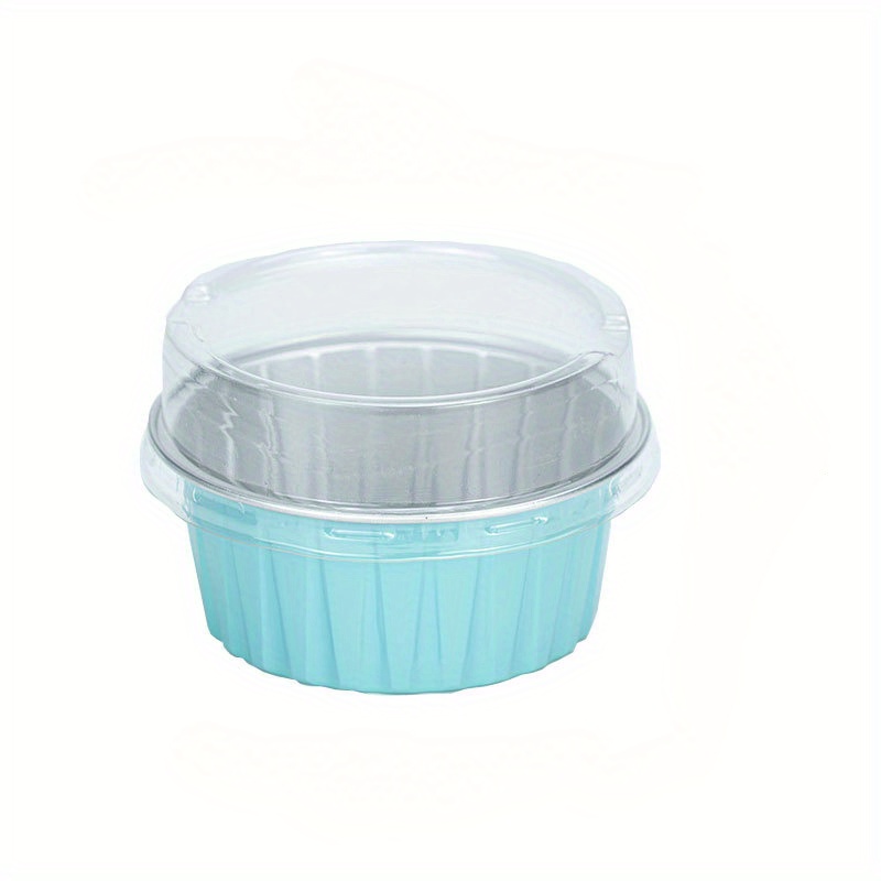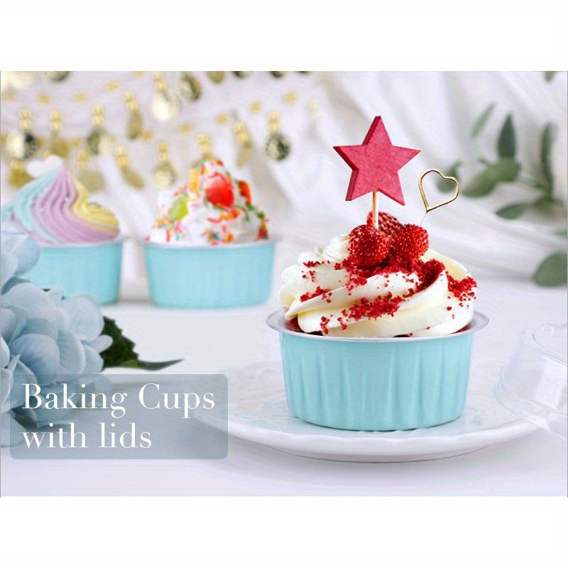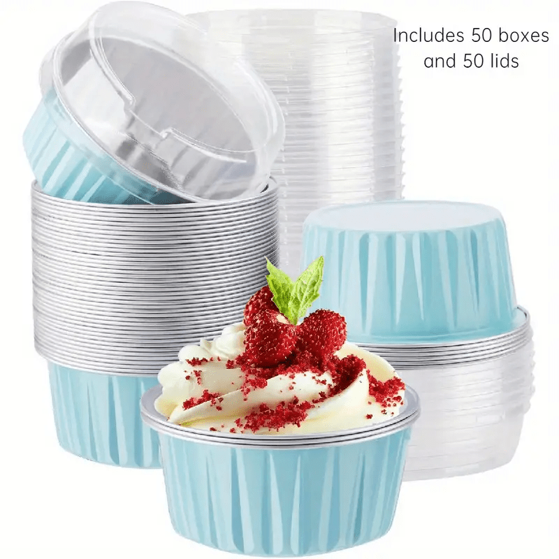 Blue 50pcs 5oz Mini Aluminum Foil Baking Cups with Lids – Ideal for Cheesecake, Creme Brulee, and Cupcakes – Perfect for Party Gifts and Birthday Supplies, Cheesecake Cups | Decorative Baking Cups | Durable Aluminum Cups