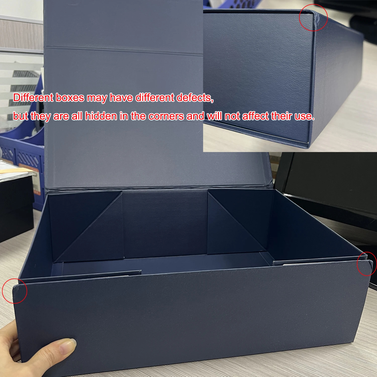 1 There is a slight crease at the corners, but it does not affect the use. Please purchase with caution, this defect will not be used as a reason for a refund. we'll pack it very carefully, to avoid further damage)