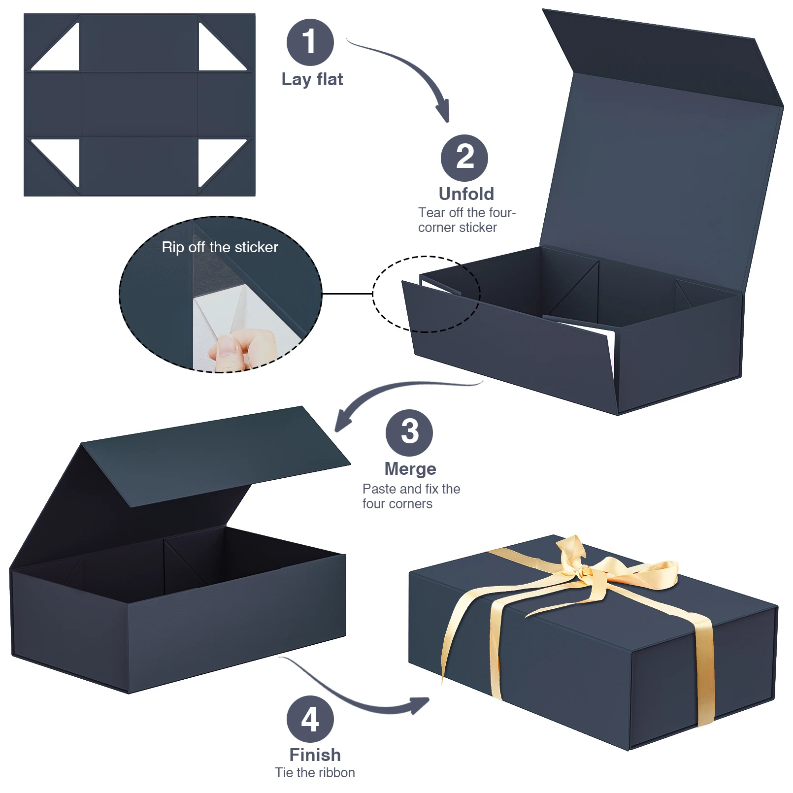 【EASY TO ASSEMBLE】Made from excellent strength cardboard and wrapped with quality paper. Tear off white triangle stickers, then assemble and bond the box. These large gift boxes are easily reusable and recycle, can be reused as a great space.