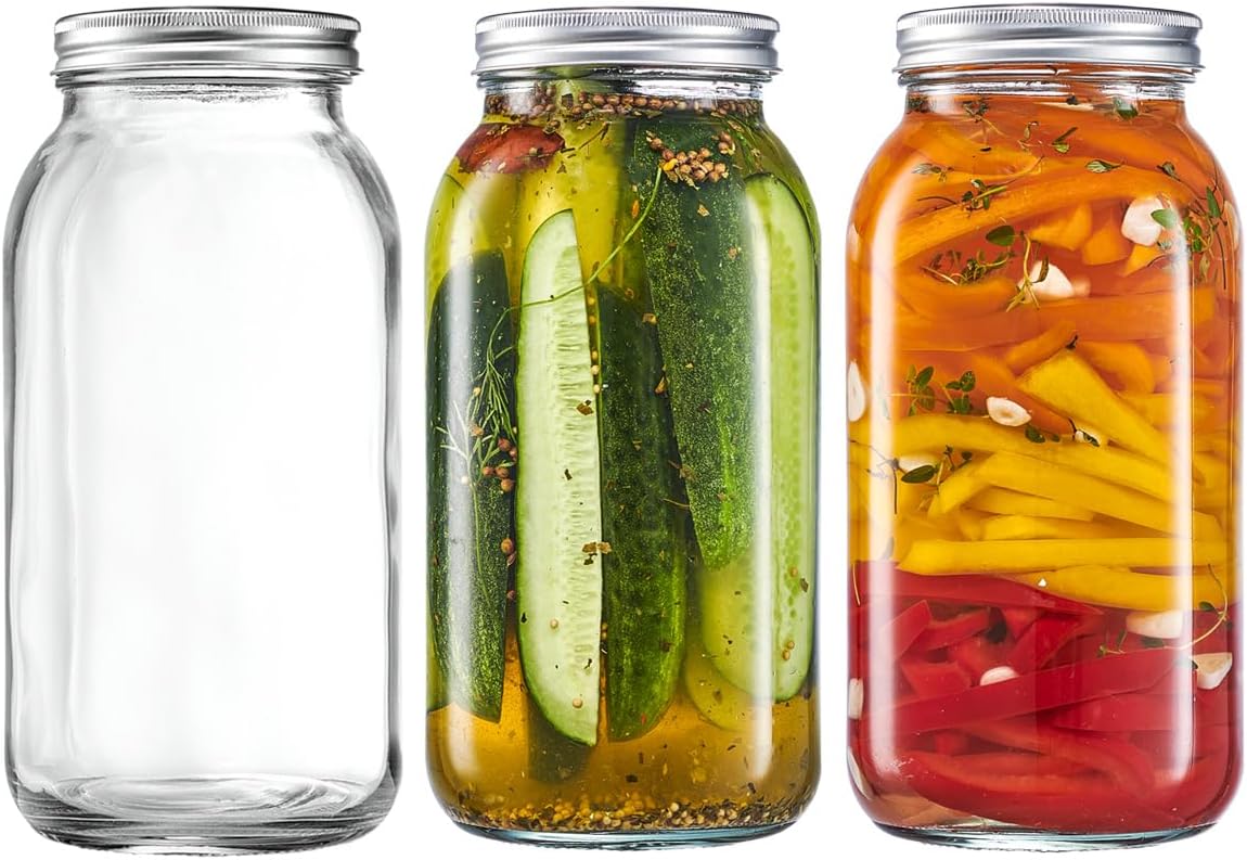 Glass Mason Jars W/ Lids- 3 sets of 64oz. ball canning jars and lids that are super for preserving and meal prep.These mason jars 16 oz are ideal for fruits, vegetables, pickles, sauces, treats, dry foods, beans etc.