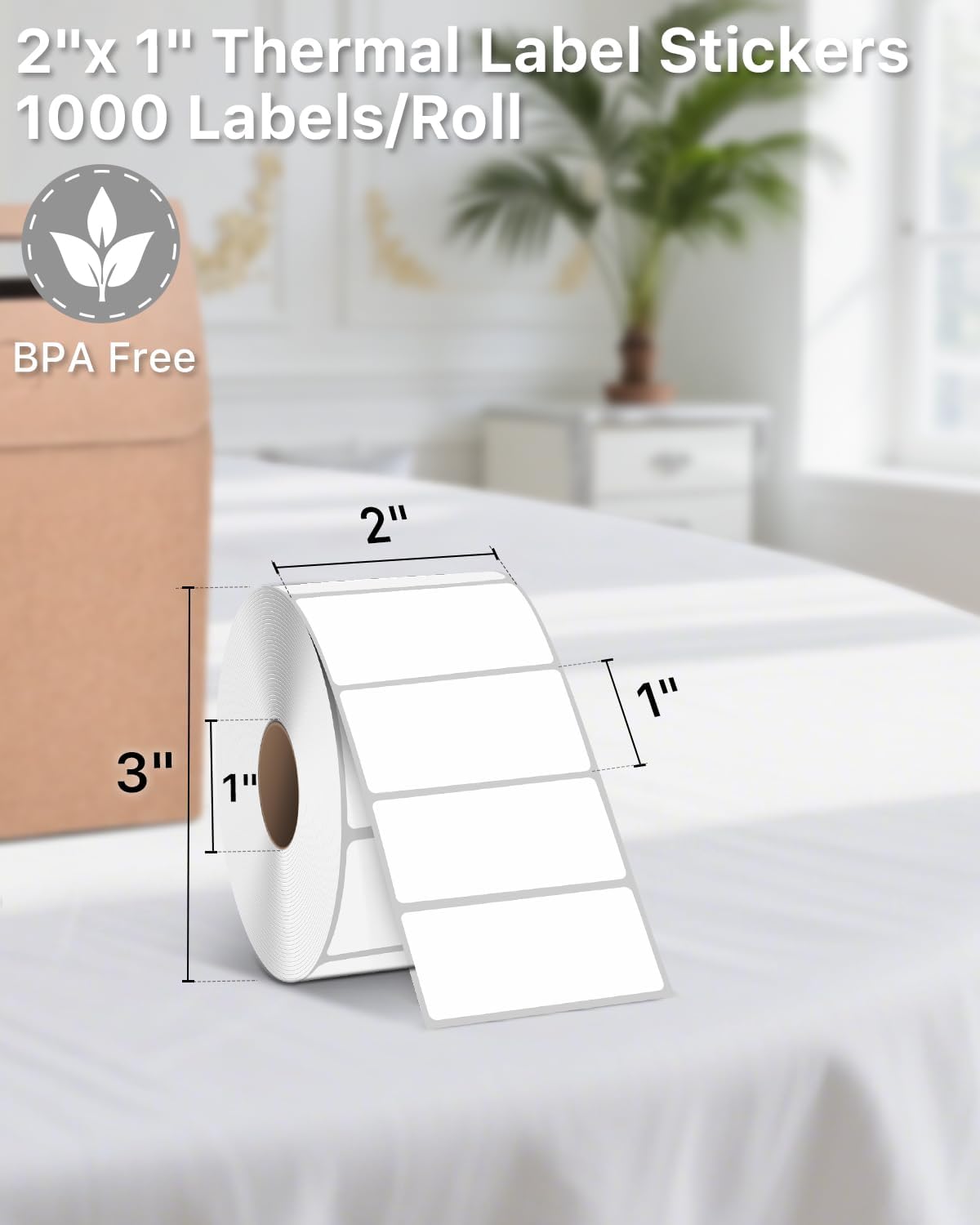 Specifications: iEager 2″ x 1″ white thermal label with perforation line, 1000 labels/roll. Paper tube inner diameter 1″. No ink, toner or ribbons needed