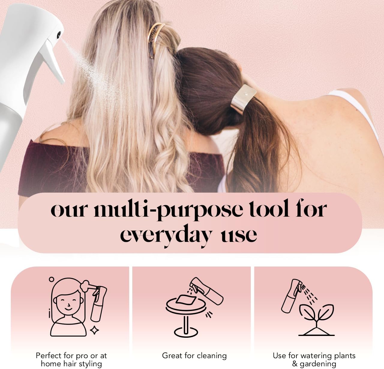 ULTRA-FINE MIST FOR EFFORTLESS HAIR STYLING: Experience smooth, clog-free spraying with this continuous spray bottle that delivers an even, ultra-fine mist—perfect for refreshing curls, waves, and prepping hair without drenching. Ideal for daily styling, second-day curls, or plopping routines.