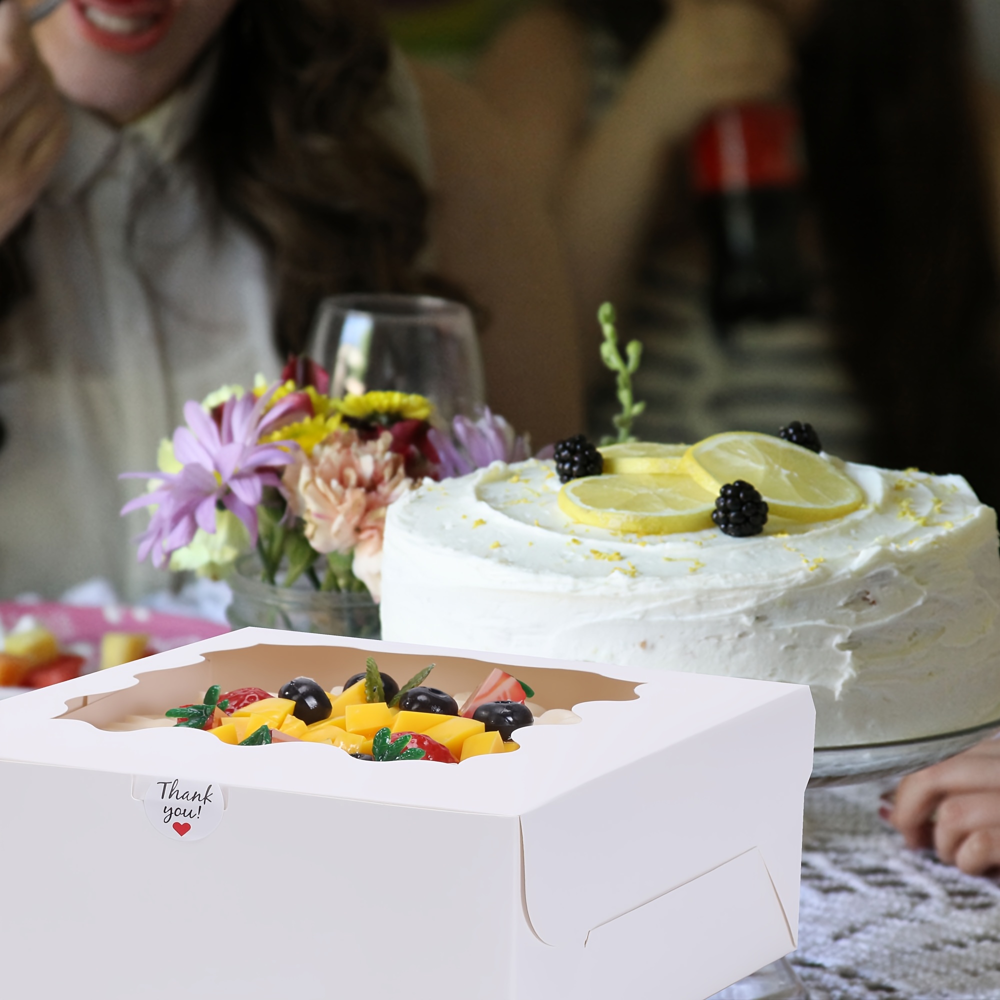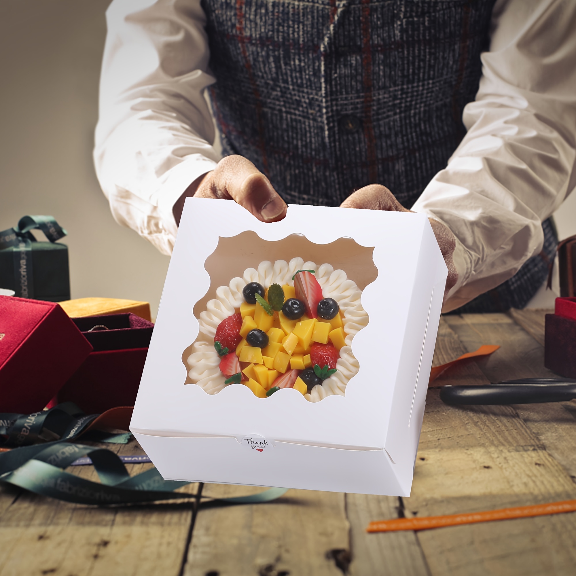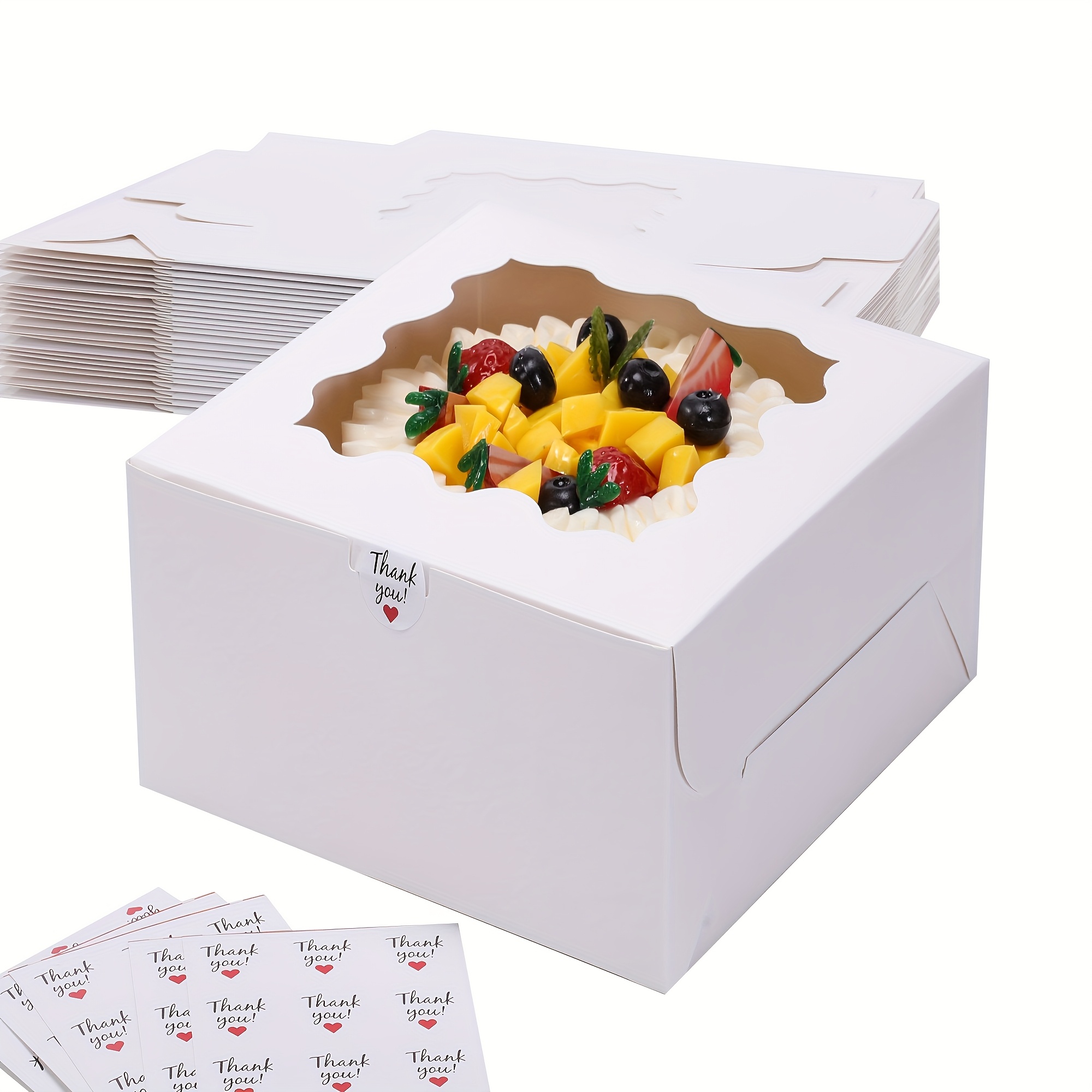 MOMODELLI 8x8x5"e; White Baskin Open Window Cake Box – Disposable Paper Gift Box with Lid for Birthdays, Weddings, Valentine'S Day, Christmas, and More – Ideal for Cheesecake, Chocolate, Strawberry, and Dessert Packaging, Dessert Packaging | Decorative Cake