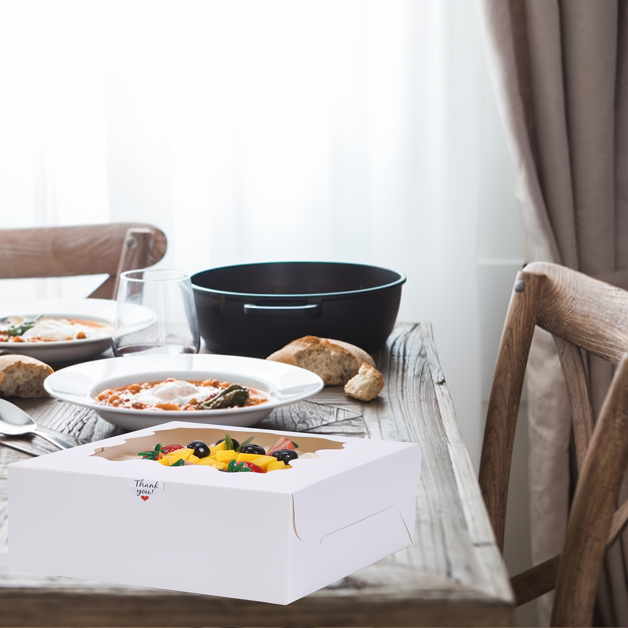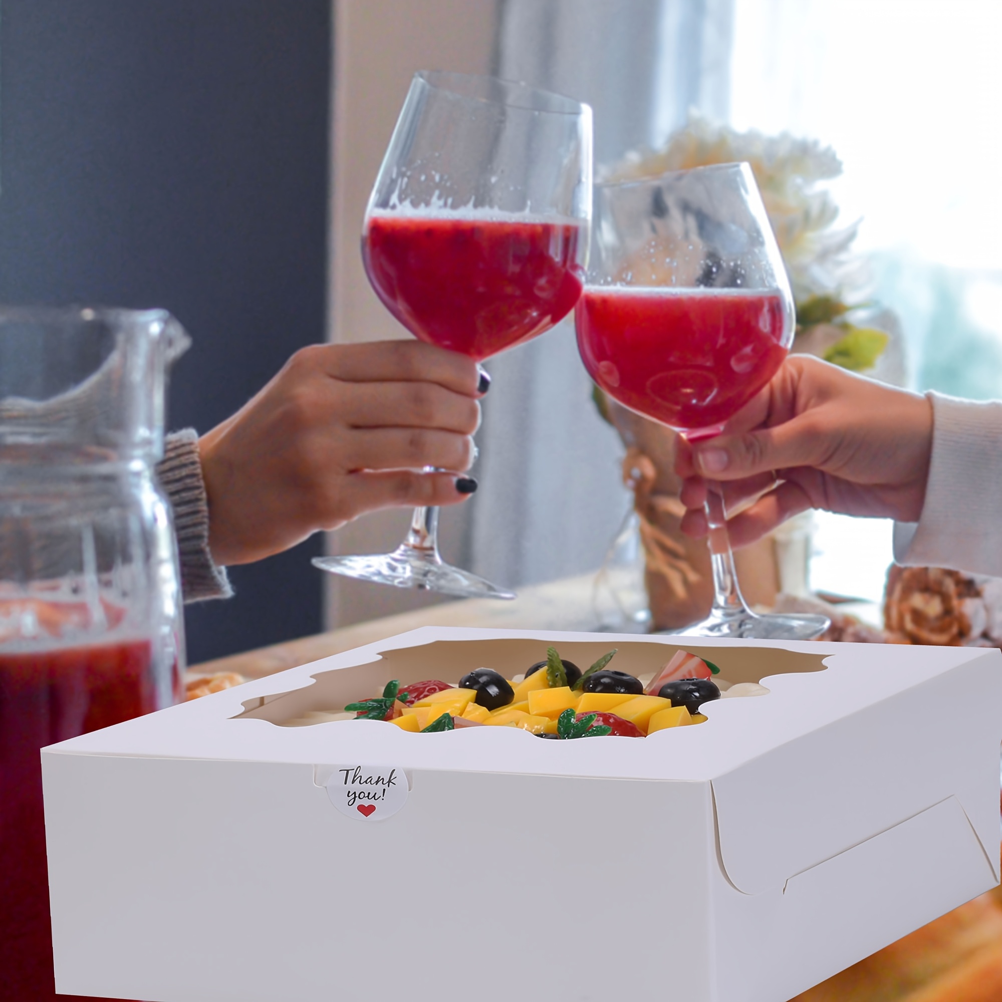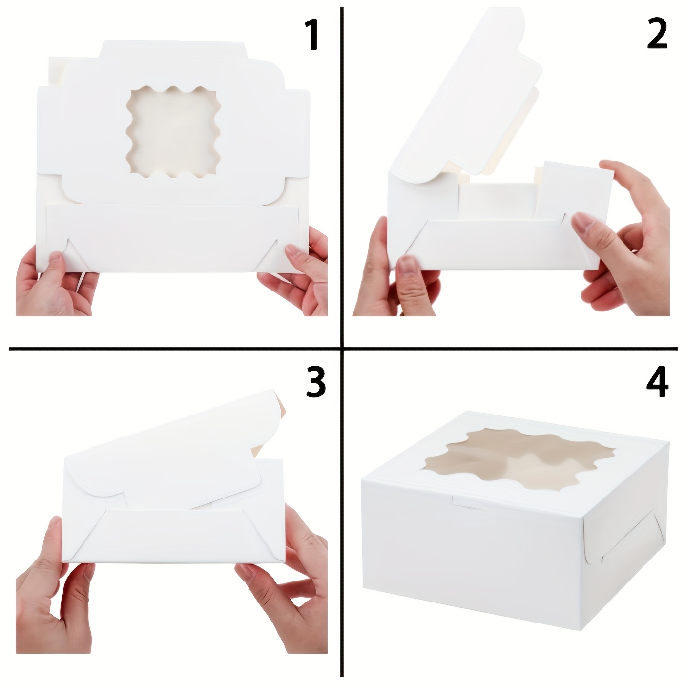 MOMODELLI 8x8x5"e; White Baskin Open Window Cake Box – Disposable Paper Gift Box with Lid for Birthdays, Weddings, Valentine'S Day, Christmas, and More – Ideal for Cheesecake, Chocolate, Strawberry, and Dessert Packaging, Dessert Packaging | Decorative Cake