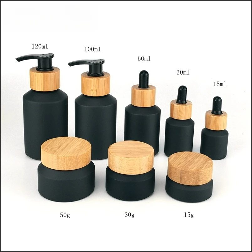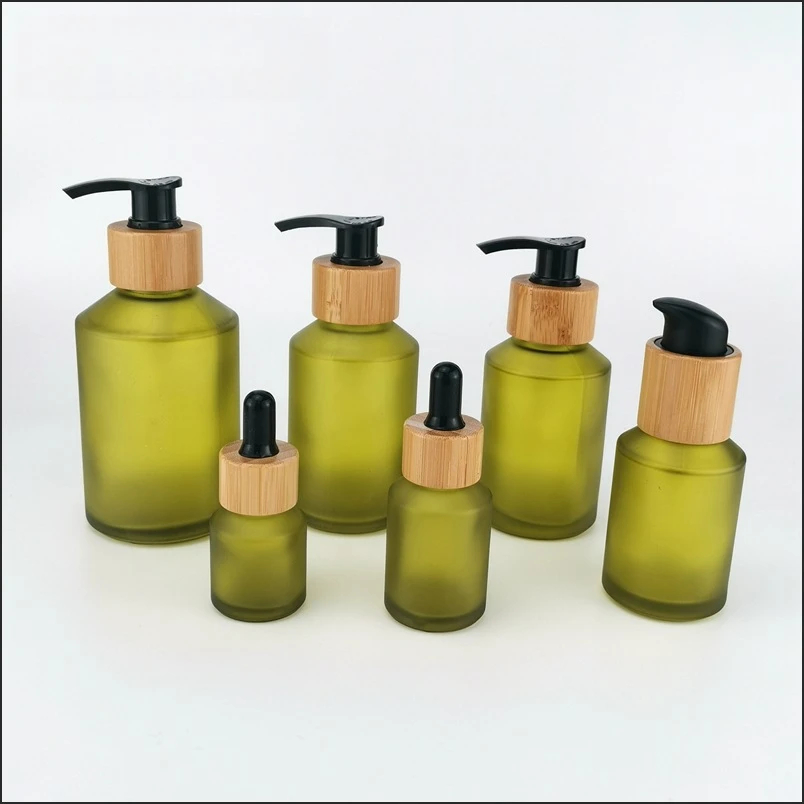 Natural Bamboo Perfume Bottle Green Glass Empty Cream Lotion Jar 15ml-200ml DIY Cosmetic Containers Shampoo Pump Bottle Travel