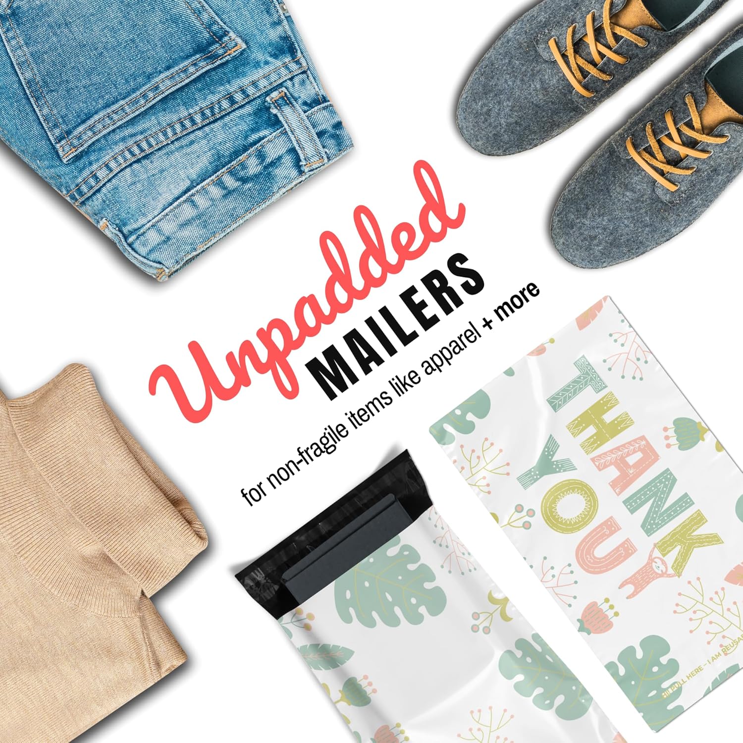 Stylish and Memorable Designs: Stand out with chic poly mailers in trendy patterns like animal, floral, and thank you prints – perfect for creating a lasting impression and boosting brand recognition.