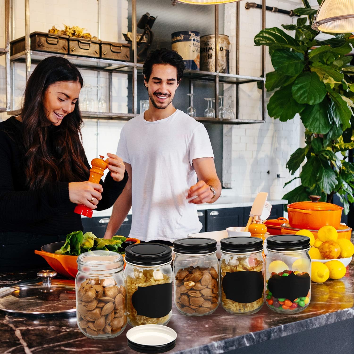 Mason Jars,Glass Jars With Lids 12 oz,Canning Jars For Pickles And Kitchen Storage,Wide Mouth Spice Jars With Black Lids For Honey,Caviar,Herb,Jelly,Jams,Set of 20