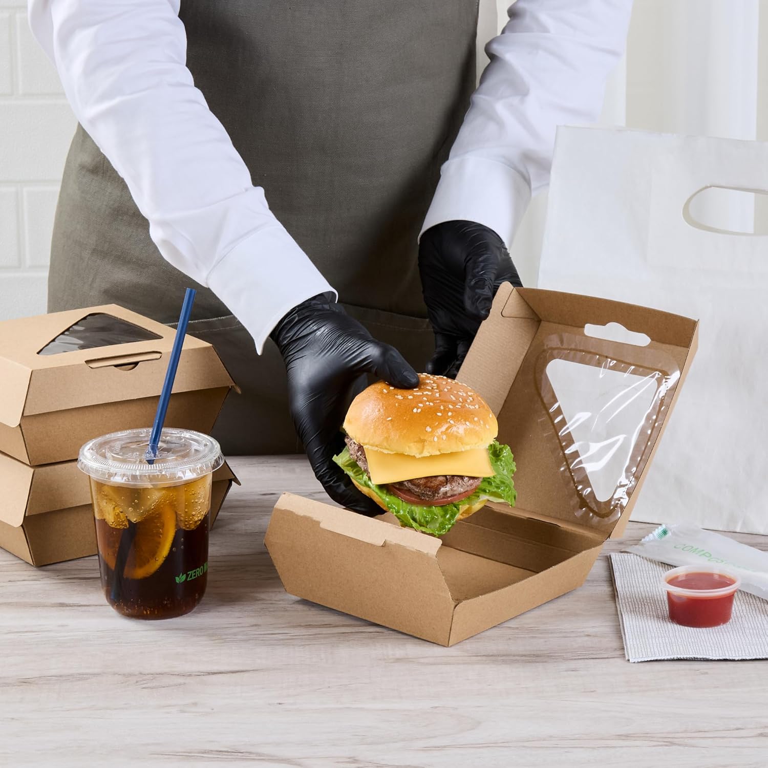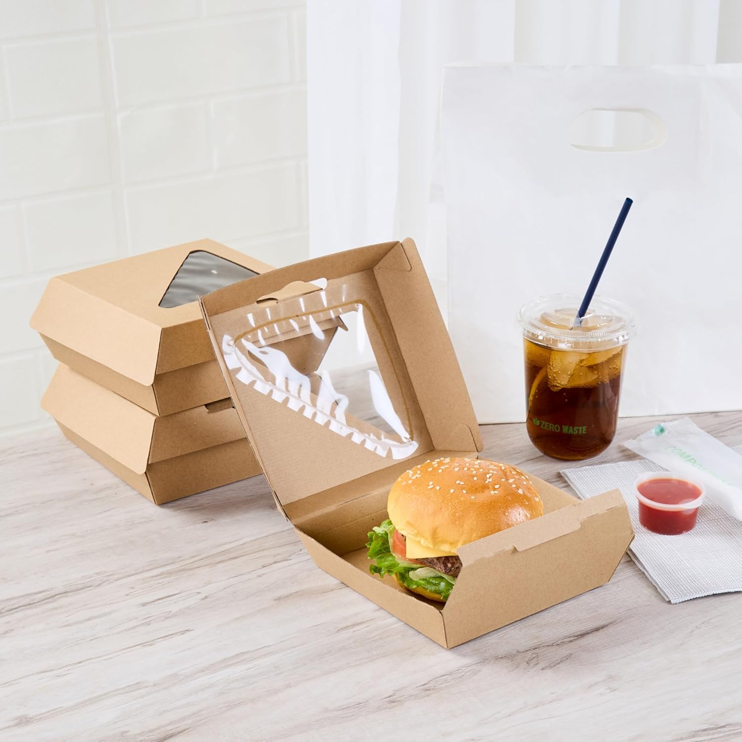 QUICK IDENTIFICATION: Featuring a clear window, these hamburger boxes make it easy to quickly identify meals, reducing confusion and avoiding any mix-ups. See what’s inside without opening the box.