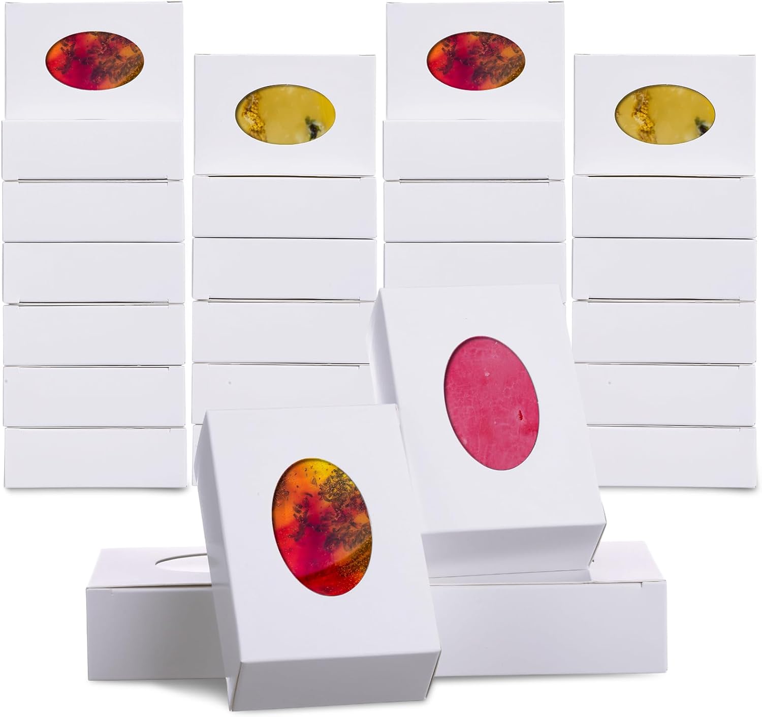 Appropriate Dimension: the size of soap boxes with window is about 3 x 3 x 1.2 inches/ 7.5 x 7.5 x 3 cm, small and delicate, easy to pick and place, ideal for soap packaging