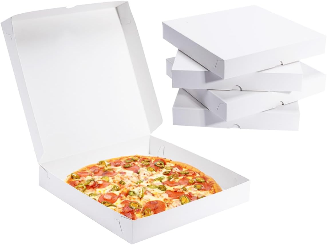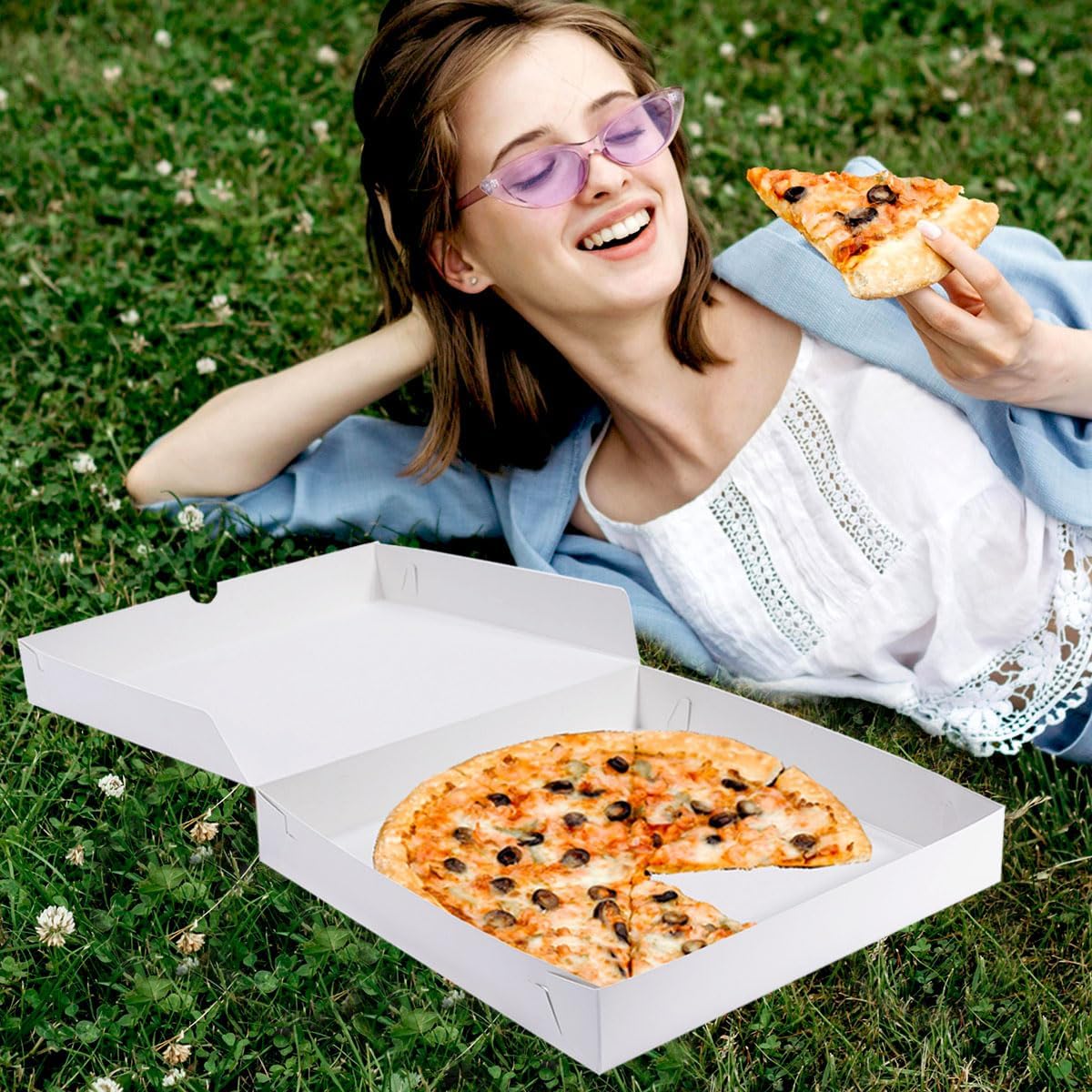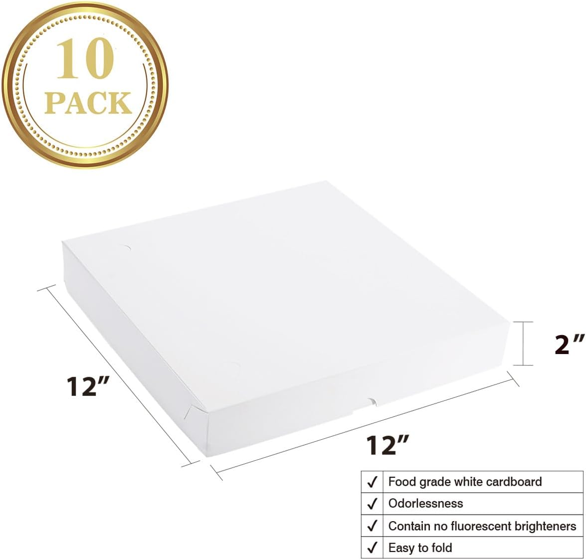 Size:12x12x2 inch 10pcs Paperboard Material pizza boxes. Use them to store a variety of food items such as steak, pizza,cookies, cheesecakes, pie.
